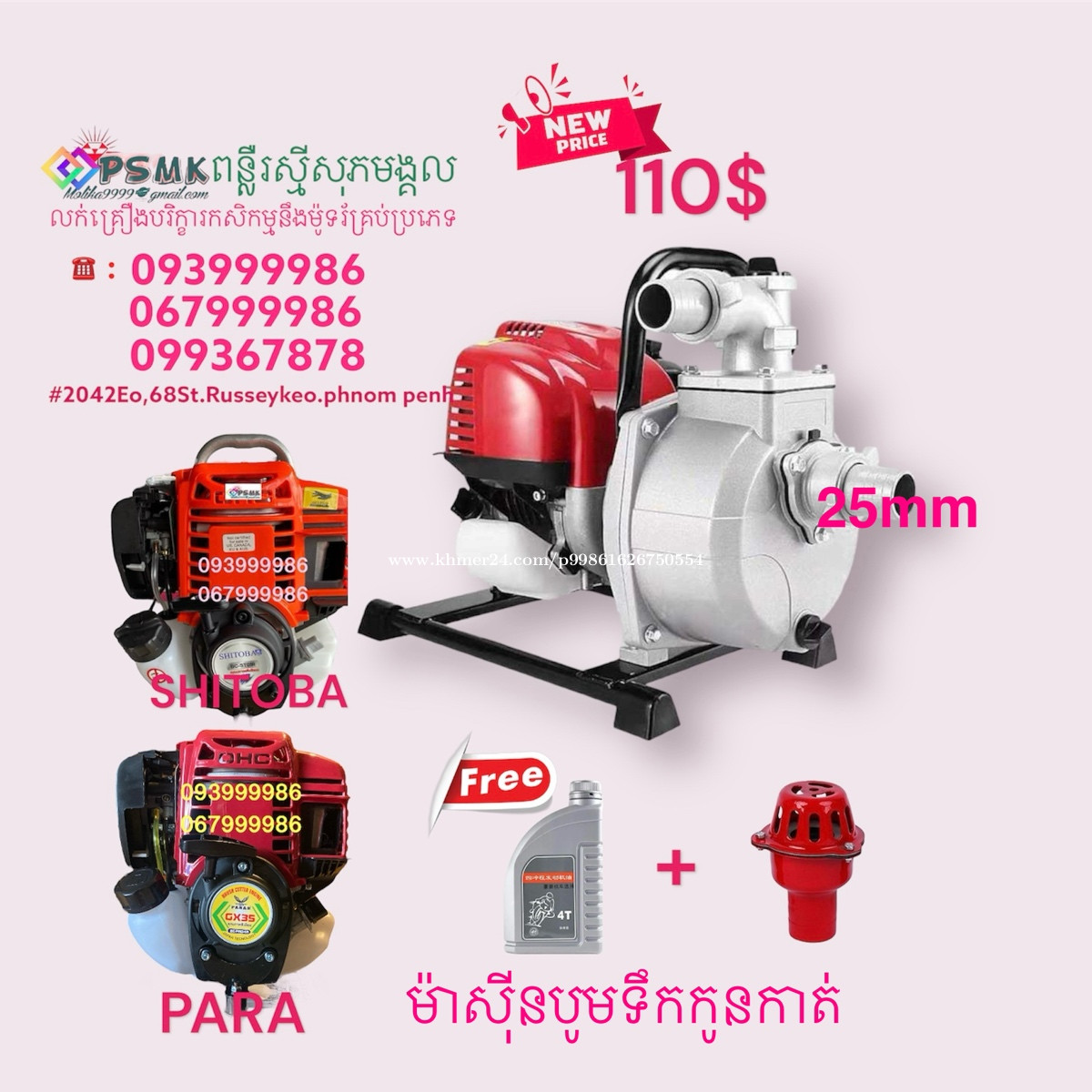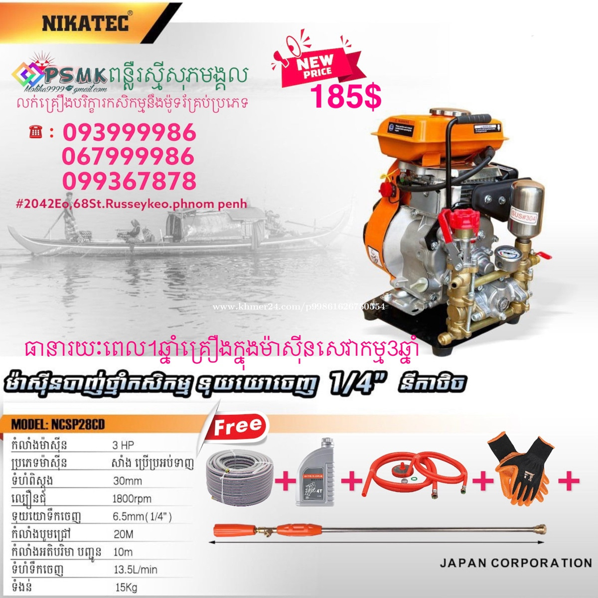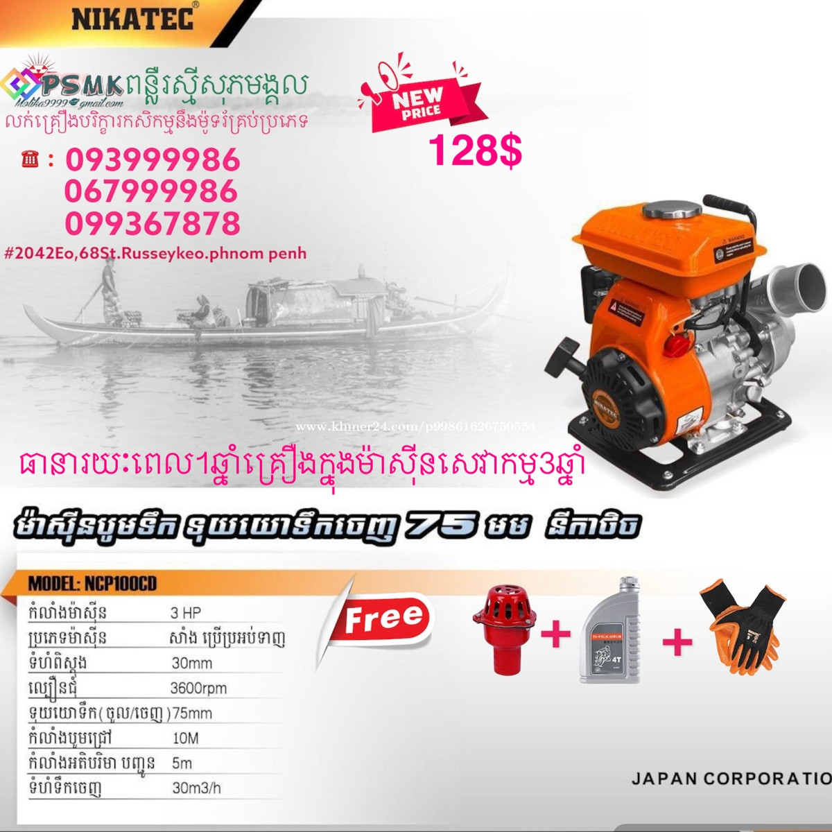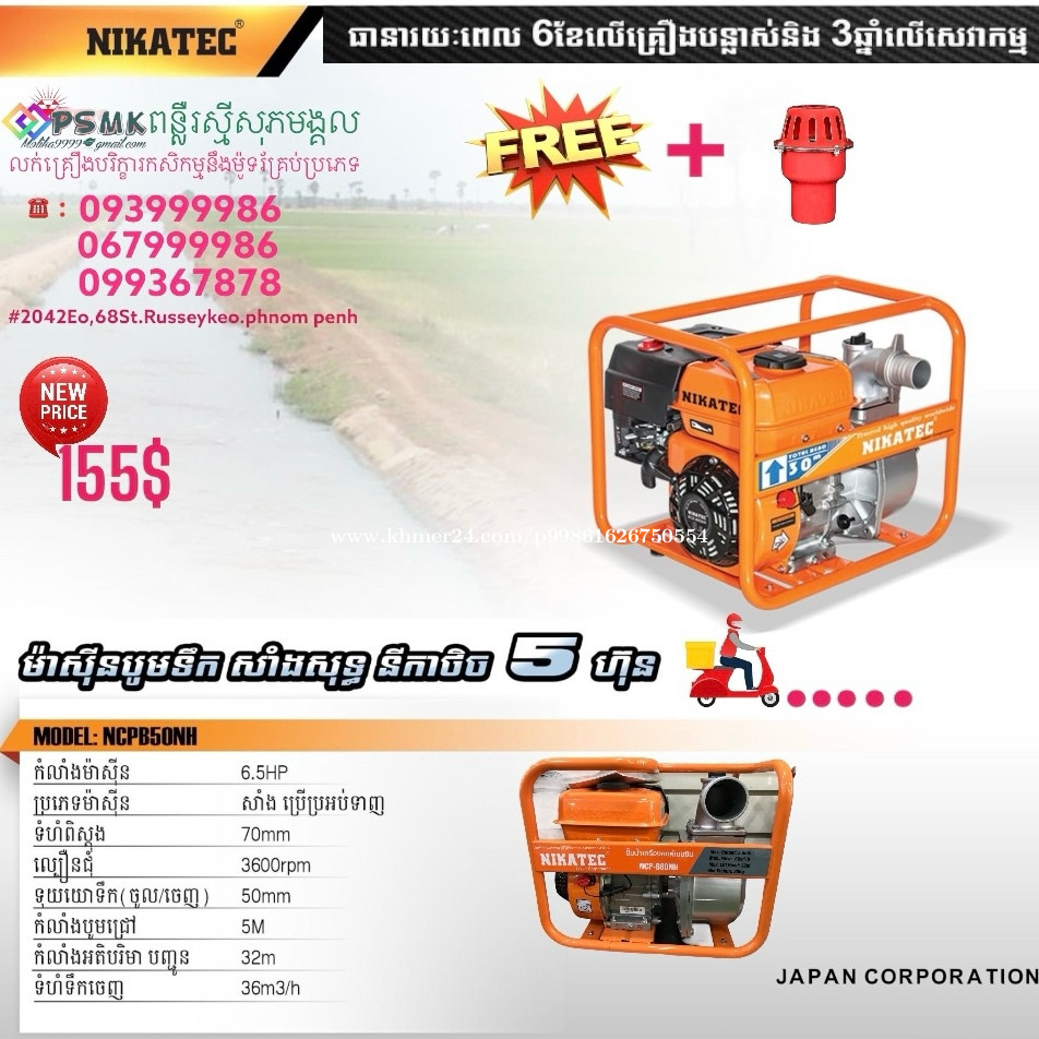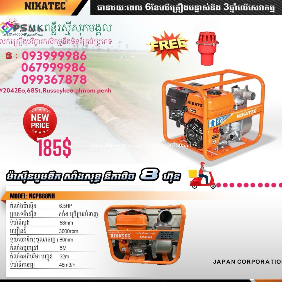 ម៉ាសុីនបូមទឹកម៉ាកនីកាថិចមានខ្នាតតូចយូដៃទុយោ25,32,50,80mm តំលៃមានក្នុងរូបនឹងគ្រឿងថែមជូនស្រាប់