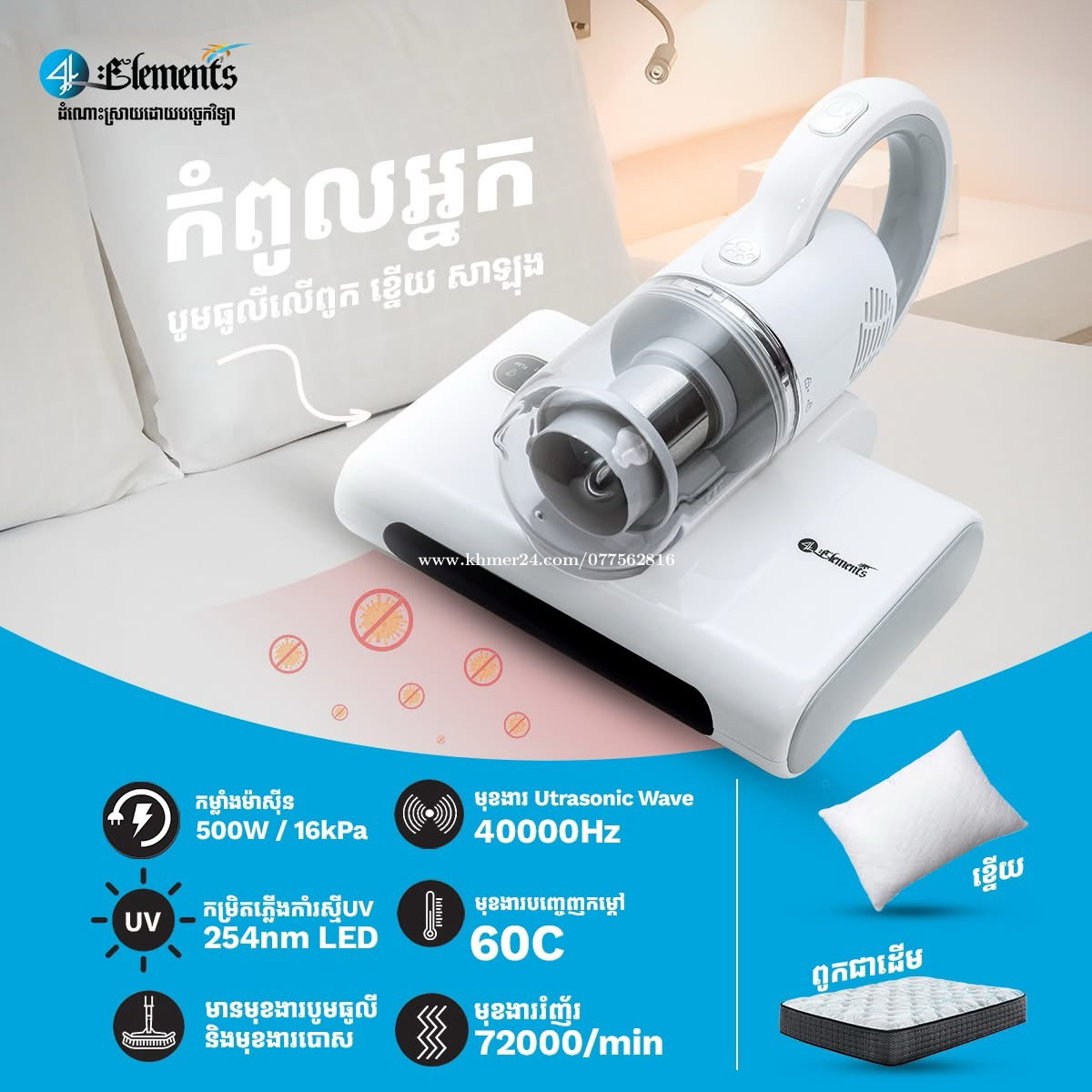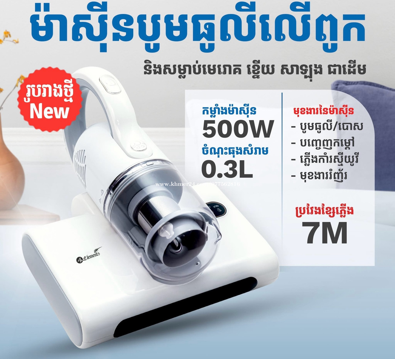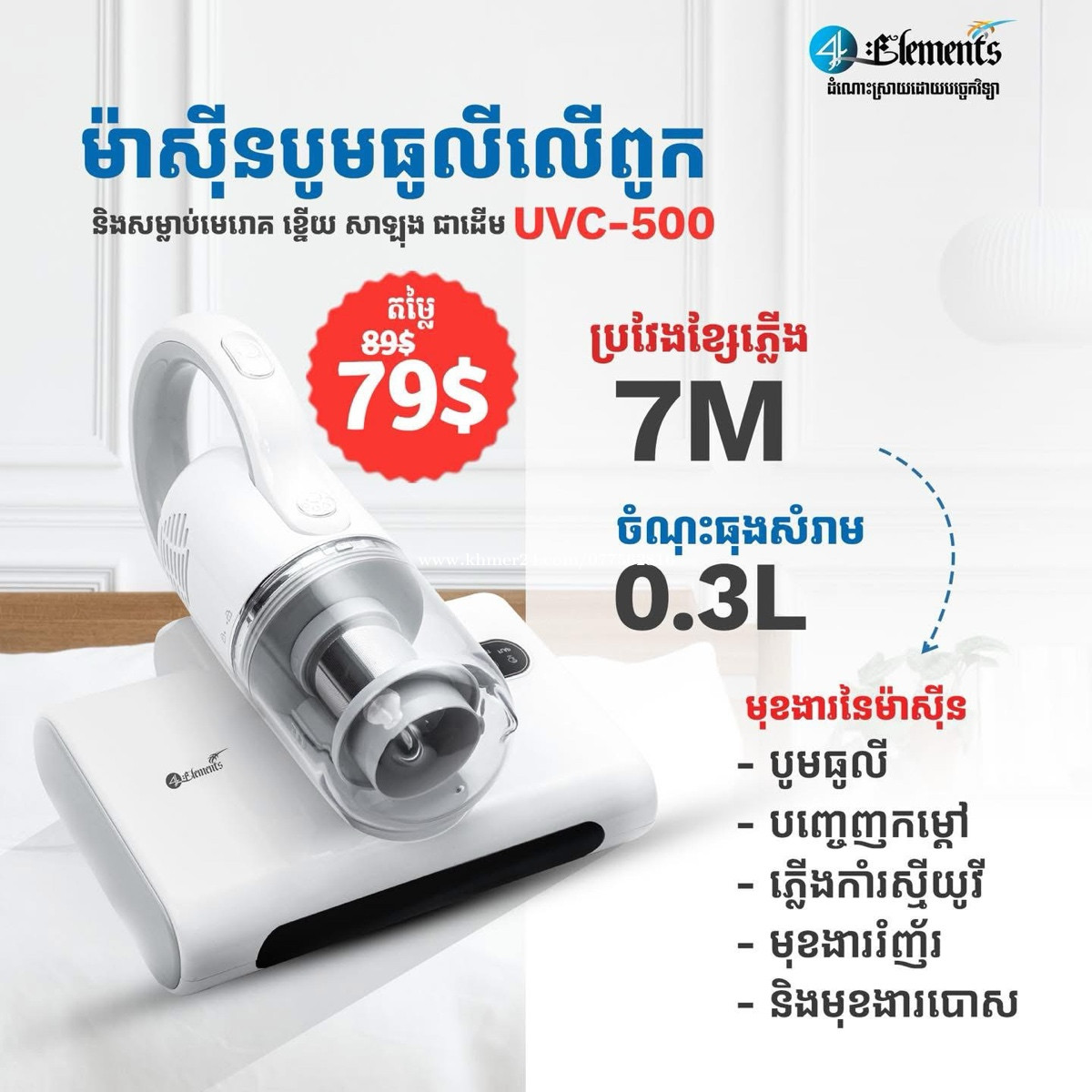ម៉ាសុីនបូម ធូលីលើពូក ខ្នើយ សាឡុង និងសំលាប់មេរោគ លក់ធូរថ្លៃ នៅស្អាត 99% ទិញពីក្រុមហ៊ុនមកថ្មី តំលៃ 79$ ។ ចង់លក់វិញតែ 45$ ទេ ព្រោះអាឡូវរវល់ខ្លាំង អត់បាននៅផ្ទះ អត់មានពេលបូម ។ បើត្រូវការទាក់ទាក់ទងមកបាន 0954553xxxClick To Call