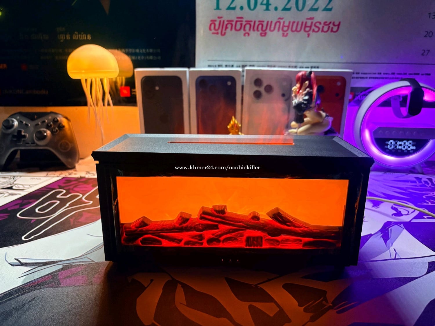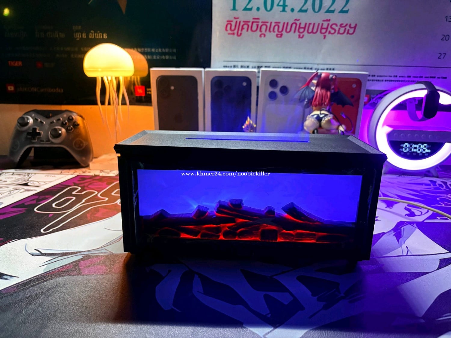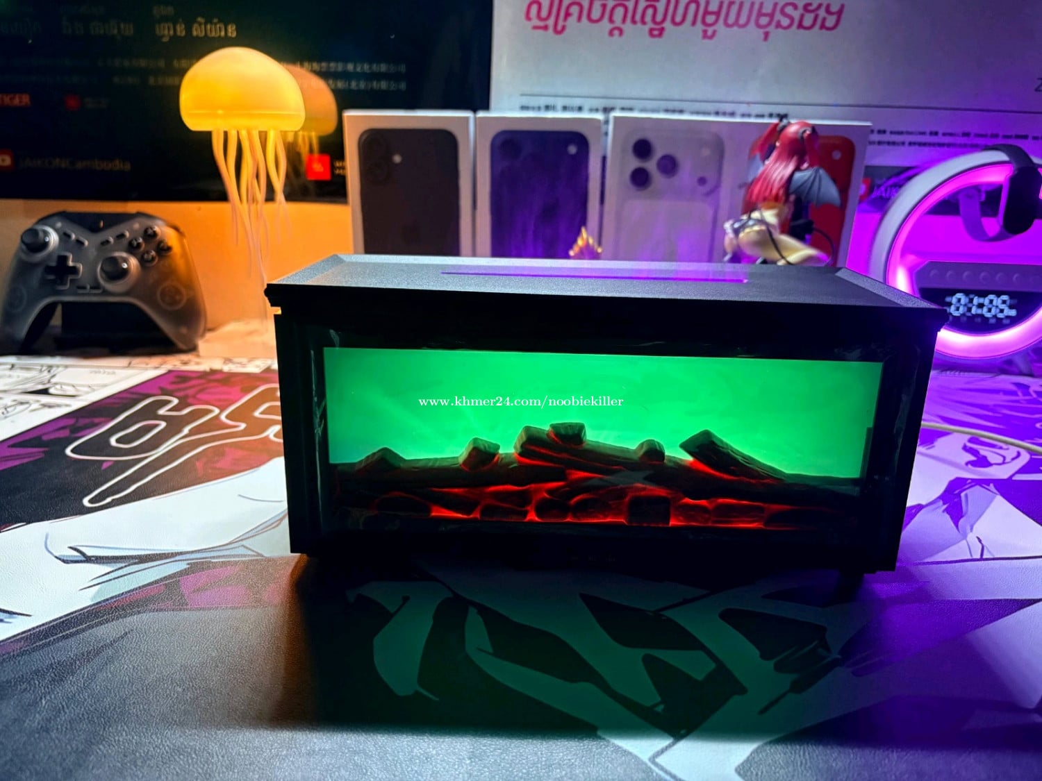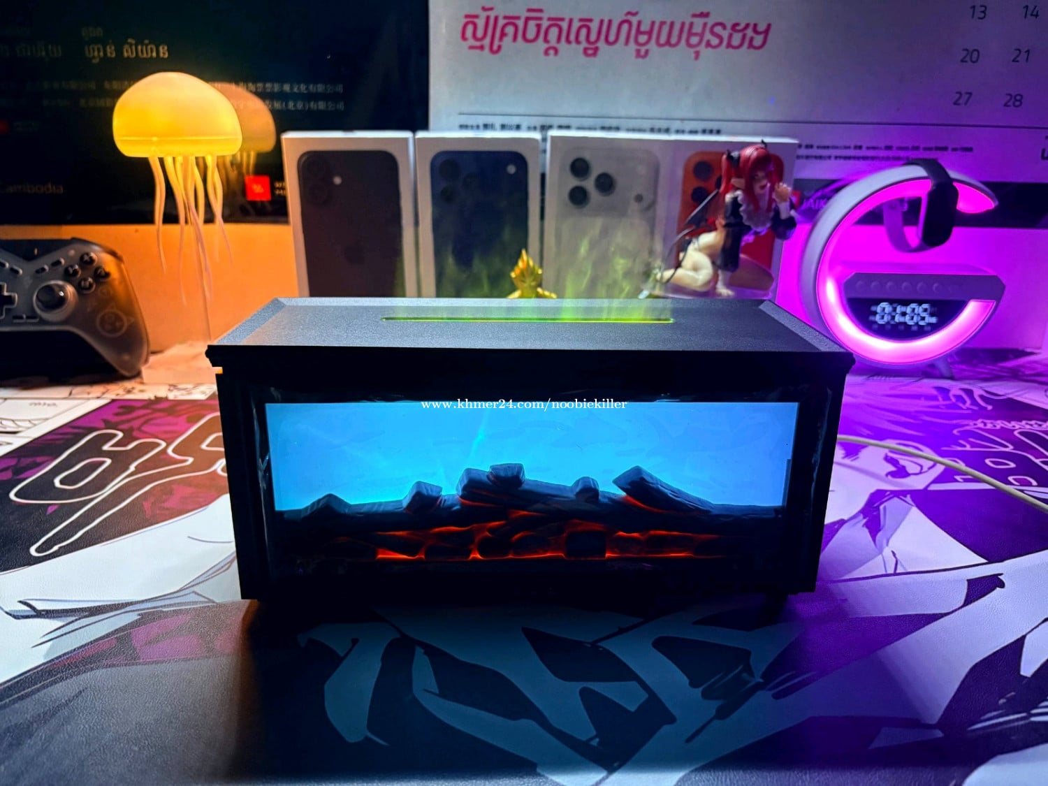 ម៉ាស៊ីនចំហាយទឹក មានតេលេបញ្ជា មានភ្លើង RGB