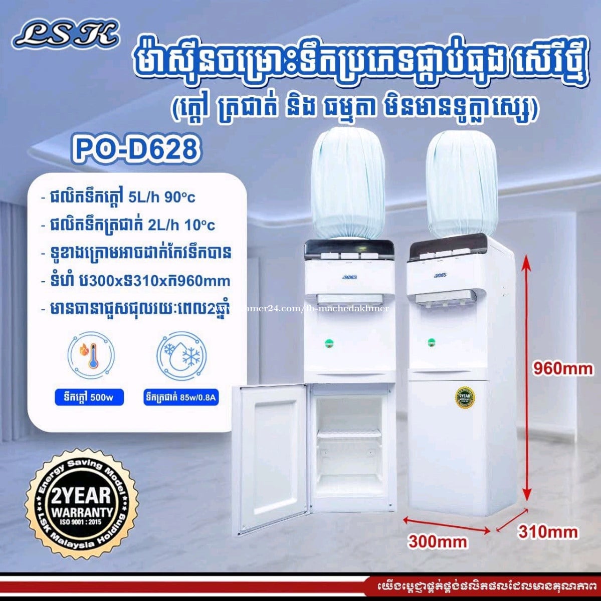 ម៉ាស៊ីនទឹកក្តៅ ធម្មតា និងត្រជាក់ម៉ាកLSK ស៊ីភ្លើងតិច មានក្បាល3 មានថតក្រោមដាក់កែវបាន ថ្មីធានា2ឆ្នាំ