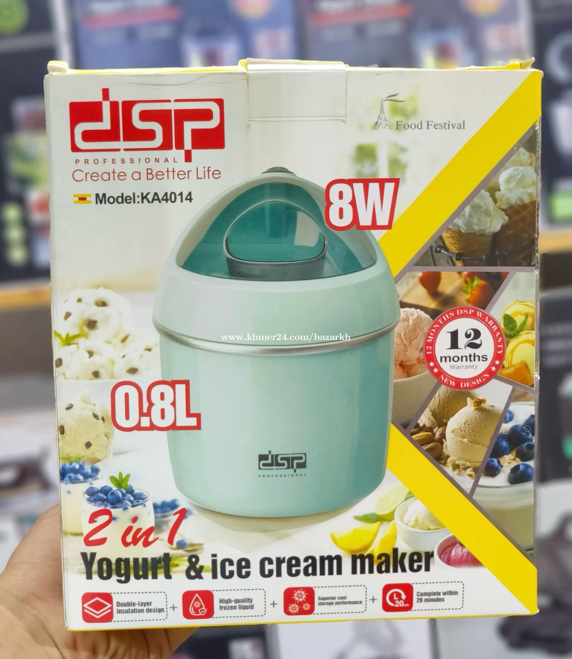 #ម៉ាស៊ីនធ្វើការ៉េម និងធ្វើយាអួរ 2In1 #Ice cream & Yogurt maker ✅ កម្លាំង 8W ✅ ចំណុះ 0.8L ✅ គុណភាពល្អ និងតម្លៃសមរម្យ ☎️ 016399xxxClick To Call/0712122xxxClick To Call/061412xxxClick To Call