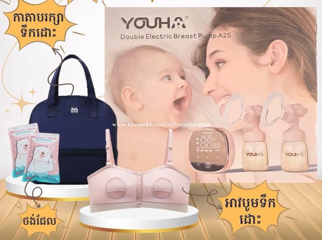 ម៉ាស៊ីនបូមទឹកដោះថ្មី 99% បូមបានម្តងគត់ មានថែមអាវបូម១ កាបូប១ ជែល ២