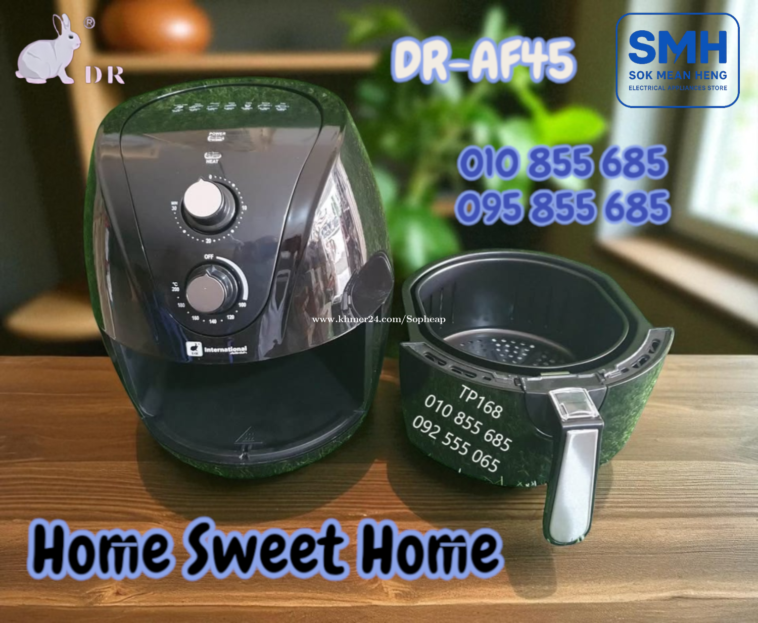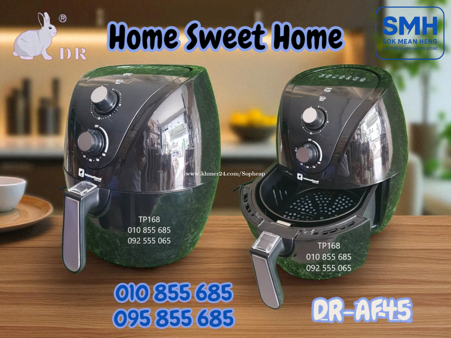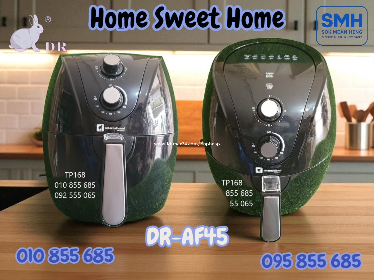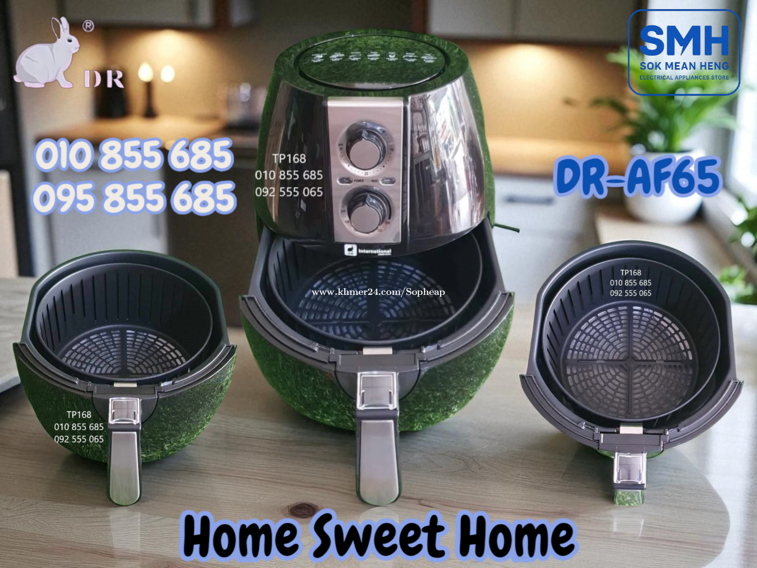 ម៉ាស៊ីនបំពងស្ងួត InternationalDR 4.5L / 6.5L Air Fryer . - ផលិតផលប្រទេសថៃ / Product of Thailand - ជូយកាត់បន្ថយជាតិខ្លាញ់ និងភាពធាត់ បាន 80% - អាចចំអិន និងកំដៅម្ហូប បានគ្រប់ប្រភេទ . 1. ម៉ាស៊ីនបំពងស្ងួត International DR-AF45 Air Fryer (Air Oven) - Basket Capacity: 4.5L - Food Capacity: 3.2L - Power: 1200-1400W / 220-240V * Price / តំលៃ: 49$ . 2. ម៉ាស៊ីនបំពងស្ងួត International DR-AF65 Air Fryer (Air Oven) - Basket Capacity: 6.5L - Food Capacity: 4.5L - Power: 1400-1600W / 220-240V * Price / តំលៃ: 59$ . SMH / សុខ មាន ហេង / Sok Mean Heng ហាងលក់គ្រឿងប្រើប្រាស់អគ្គិសនី / Electrical Appliances Store . ✅ ហាងផ្លូវការដែលមានការទទួលស្គាល់ត្រឹមត្រូវដោយ Khmer24 / Verified Business Account by Khmer24 💯 ទទួលបានទំនុកចិត្តខ្ពស់ពីអតិថិជនជាច្រើន / Trusted by Real Customers. 📍 មានទីតាំងច្បាស់លាស់ និងពិតប្រាកដនៅភ្នំពេញ / We have a clear and real/verified location in Phnom Penh. . Phone / Telegram (សេវាកម្មរហ័ស / Fast Service): Smart: 010855xxxClick To Call / https://t.me/Annsopheap Cellcard: 095855xxxClick To Call / http://t.me/Annsopheap095 . អាស័យដ្ឋាន / Address: No. 392, MaoTseToung Blvd. (St. 245), Phnom Penh. (Near P Jolie Beauty Center) . ផែនទី / Maps: https://www.google.com/maps?q=11.55595844757693,104.90165490657091&15 . #រូបទន្សាយ #ម៉ាស៊ីនបំពងស្ងួត #ឡបំពងស្ងួត #បំពងស្ងួត #ថៃ #គ្រឿងអគ្គីសនី #គ្រឿងប្រើប្រាស់អគ្គិសនី #InternationalDR #AirFryer #AirOven #Fryer #Oven #Thailand #DR-AF45 #DRAF45 #DR-AF65 #DRAF65 #SMH #Appliances #ApplianceStore #HomeAppaliance #ElectricAppliances #ElectricalAppliances #Promotion #Discount #Save #Free #New