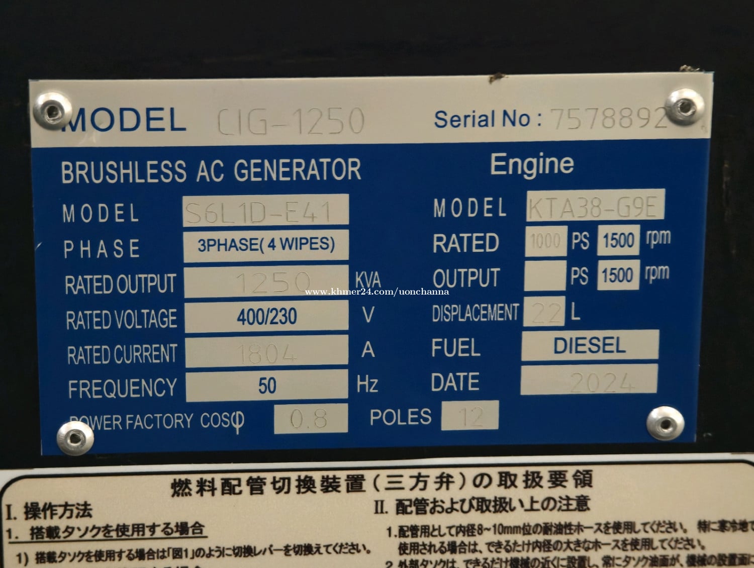 ម៉ាស៊ីនភ្លើងមួយទឹក 1250KVA CUMMINS 2024 ✅ ធានារយះពេលជូន ✅ 1 ឆ្នាំលើសេវ៉ាកម្មជួសជុល បូករួមជាមួយនិងការ 👉 𝐅𝐫𝐞𝐞 ដឹកដល់កន្លែង 👉 𝐅𝐫𝐞𝐞 ភ្ជាប់ភ្លើងចូលអាគារ -.សម្រាប់ព័ត៌មានបន្ថែម បងប្អូនអាចទាក់ទងតាមរយះ -.លេខទូរស័ព្ទ: 095657xxxClick To Call 📞☎️ -.Telegram: https://t.me/CEOHR168