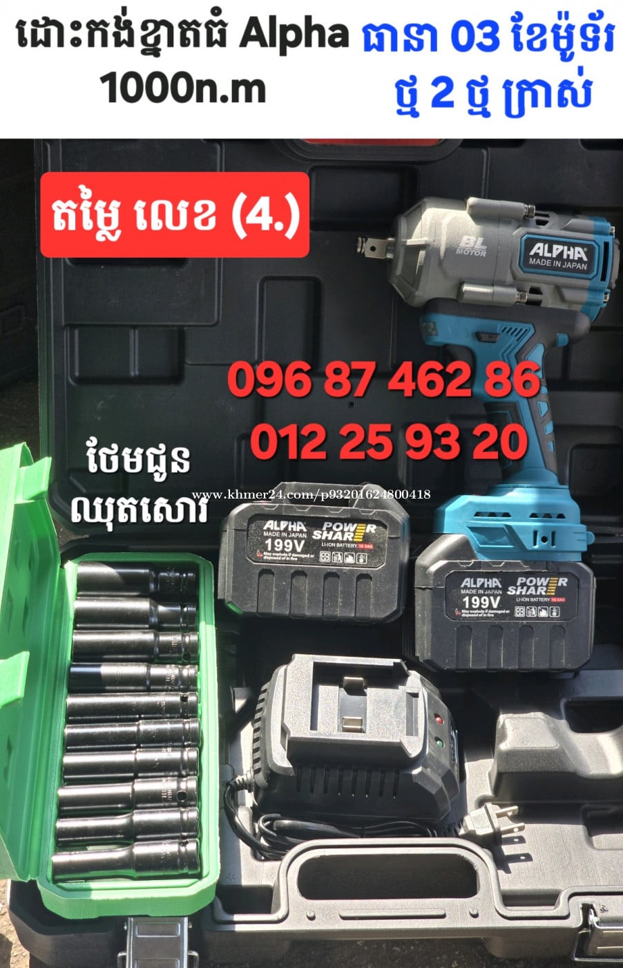 ម៉ូទ័រដោះប៊ូឡុងប្រេីថ្ម ទំហំម៉ូទ័រធំ 1000n.m កំលាំងម៉ូទ័រខ្លាំង ទំហំម៉ូទ័រធំ មានថ្ម 2
