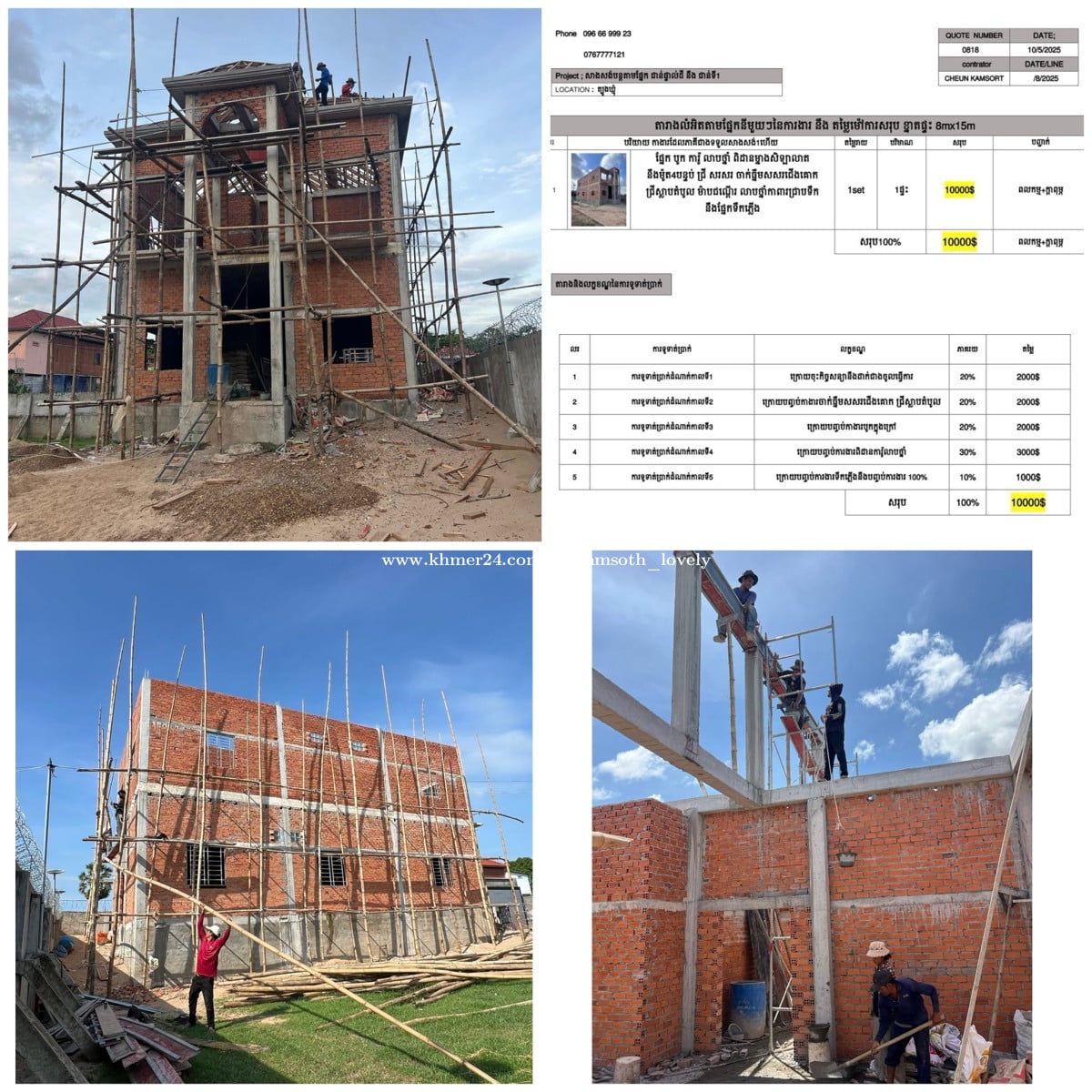 បងប្អូនមានតម្រូវការសាងសង់ផ្ទះ✅ឃ្លាំង✅រោចក្រ✅ បេតុងផ្លូវថ្នល់✅ តម្រូវការវិស្វករគូរប្លង់និងគណនា តម្លៃសាងសង់✅ រឺជាប្រភេទការងារតាមផ្នែកផ្សេងៗ✅ ពិដាន✅ការ៉ូ✅ លាបថ្នាំផ្ទះ✅រៀបចំបន្ទប់✅កាងារដែកកញ្ចក់✅គូប្លង់វិឡា✅គូប្លង់ផ្ទះល្វែង✅គូប្លង់ឃ្លាំង✅ និងគណនាតម្លៃសាងសង់ពលកម្មសម្ភារៈ✅ សូមទំនាក់ទំនង☎️☎️👷♂️ខ្ញុំបាទមានបទពិសោធន៍ 15 ឆ្នាំនិងបានកសាងសំណង់ជាច្រើននៅក្នុងស្រុកខ្មែរ ការងាររបស់ប្អូនមានកុងត្រានិងដំណាក់កាលដកលុយពីម្ចាស់គម្រោងតាមដំណាក់កាលត្រឹមត្រូវ ការធានាមានរយៈពេលចាប់ពី 6 ខែរហូតដល់ 2 ឆ្នាំទៅតាមប្រភេទការងារ👷♂️👷♂️🤝✅❤️ Tell 0966699xxxClick To Call , Tg 0767777xxxClick To Call,