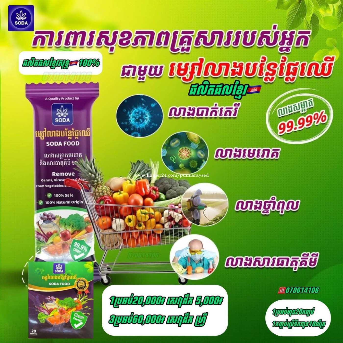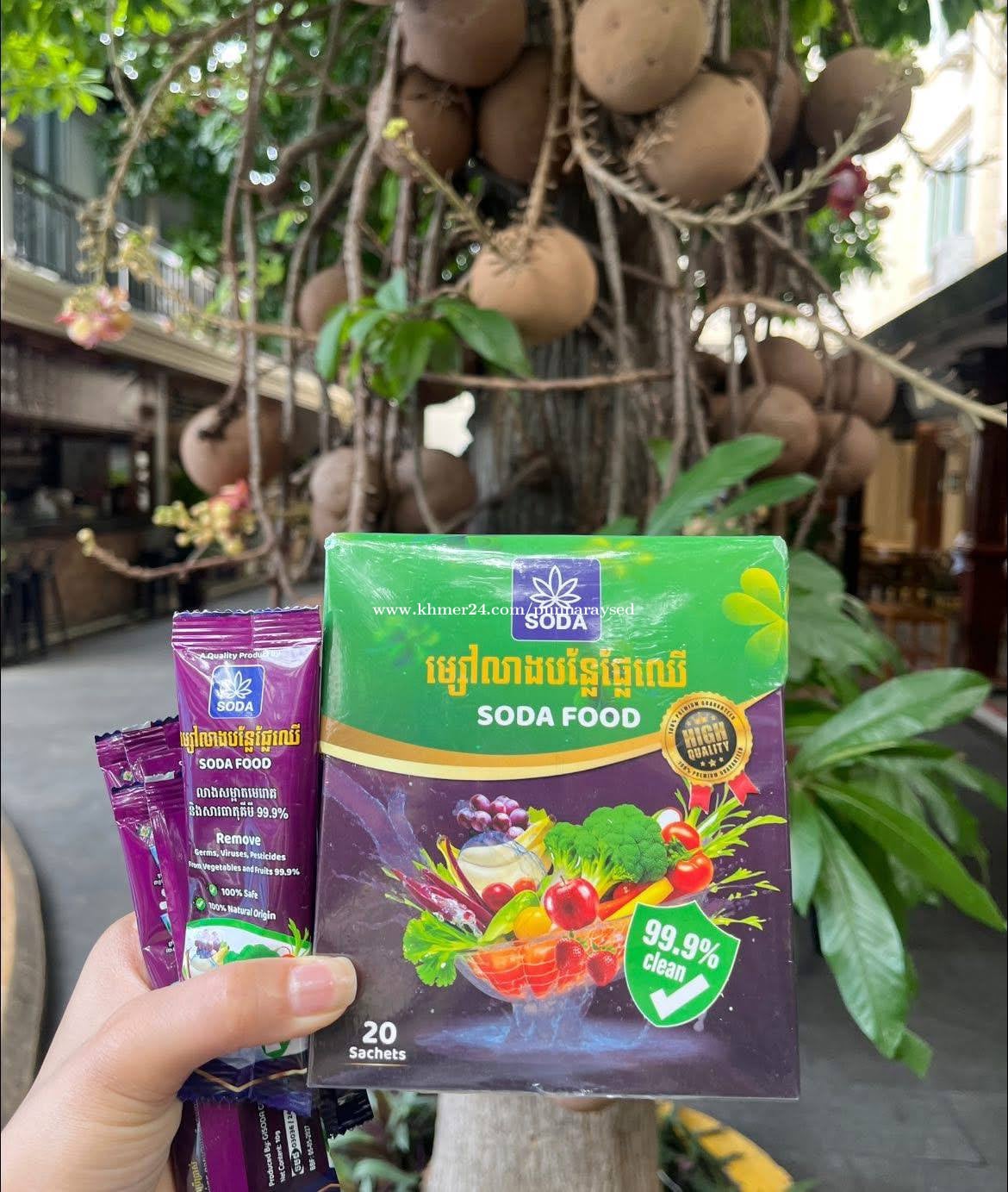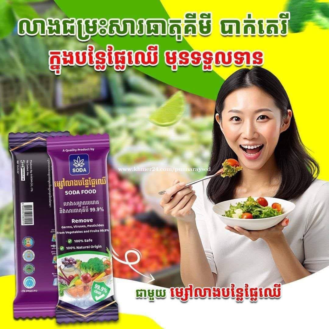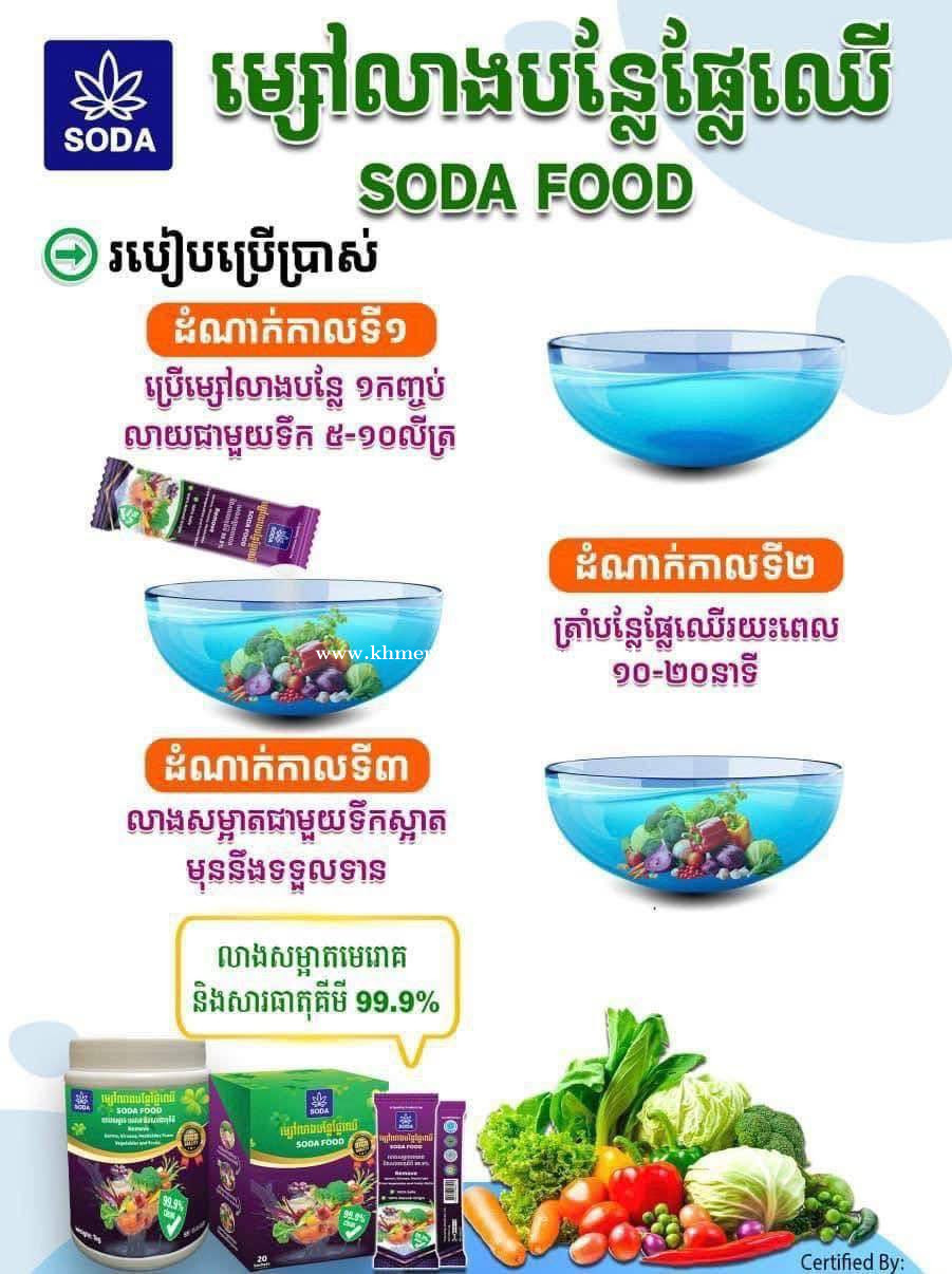 ម្សៅលាងបន្លែ ផ្លែឈើ SODA FOOD ផលិតផលខ្មែរ 🇰🇭🇰🇭🇰🇭១០០% #អតថប្រយោជន៍ +លាងសម្អាតសារធាតុគីមីពុល សំណល់ថ្នាំពុលកសិកម្ម +លាងសម្អាតសារធាតុថ្នាំរក្សាគុណភាពបន្លែផ្លែឈើ +លាងសម្អាត មេរោគ បាក់តេរី ព្រូន ចៃដែលទុំលើបន្លែ ផ្លែឈើ +ជួយរក្សារភាពស្រស់របស់បន្លែ និងទទួលបានវីតាមីន100%