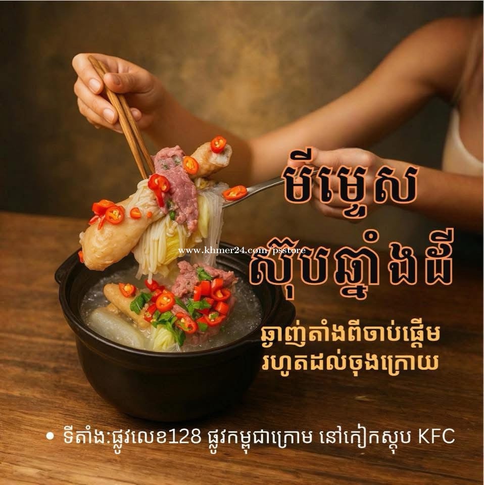 Location: 📍ទីតាំងធ្វើការនៅ ភ្នំពេញ ផ្លូវលេខ128 កម្ពុជាក្រោម នៅជិតស្តុប KFC. 📍ចូល Google Maps វៃឈ្មោះ មីម្ទេសស៊ុបឆ្នាំងដីសាខាទី៣. Tuek L'ak Pir, Tuol Kouk, Phnom Penh