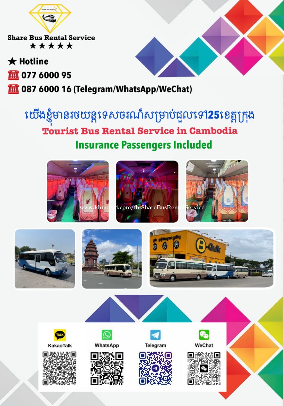 📣ទំនាក់ទំនងជួលឡាន / Bus For Rent (24/7) -Telegram: https://t.me/sharebusrentalservice -WhatsApp: 087600xxxClick To Call -KakaoTalk ID: Sharebusrental -WeChat ID: Sharebusrental -Line ID: Sharebusrental -Zalo: (+855) 87 600 016 ★ Hotline ☎️ 077600xxxClick To Call ☎️ 087600xxxClick To Call (Telegram/WhatsApp/WeChat) Email: sha***********@gmail.comClick To Sent Email យើងខ្ញុំមានរថយន្តទេសចរណ៏សម្រាប់ជួលទៅ25ខេត្តក្រុង Tourist Bus Rental Service in Cambodia 🇰🇭 #有旅游车出租 #sharebusrentalservice #រថយន្តទេសចរណ៍25កៅអីសំរាប់ជួល #FunTrip #GroupTravel #TravelCambodia #BusRental #TeamBuilding #FamilyTrip #EventTrip #25កៅអី #BookNow #ឡានក្រុង #មានឡានជួល #25seats #ឡានជួល #ជួលឡាន #bus #trips #tour #សេវាកម្មជួលរថយន្តទេសចរណ៍គ្រប់ខេត្តក្រុង #សេវាកម្មជួលឡាន #Hyundai #HyundaiCounty #រថយន្តសម្រាប់ជួល #សៀមរាប #siemreap #កំពង់សោម