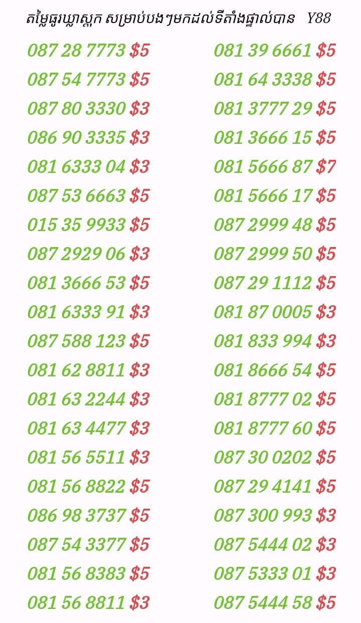 តម្លៃមានទៅតាមលេខ បញ្ជាក់ជូនបងៗ លក់ជូនបងតម្លៃនេះ សម្រាប់បងៗអាចទិញដល់ទីតាំងខាងខ្ញុំបាន សម្រាប់បងៗនៅខេត្ដអាចផ្ញើរជូនបាន តែបងៗអាចយកទៅភ្ចាប់តាមបណ្ដាលហាងលក់ទូរសព្ទ័បាន ទីតាំង ភ្នំពេញ ផ្សារឈូកមាស Telegram 096 6666 706