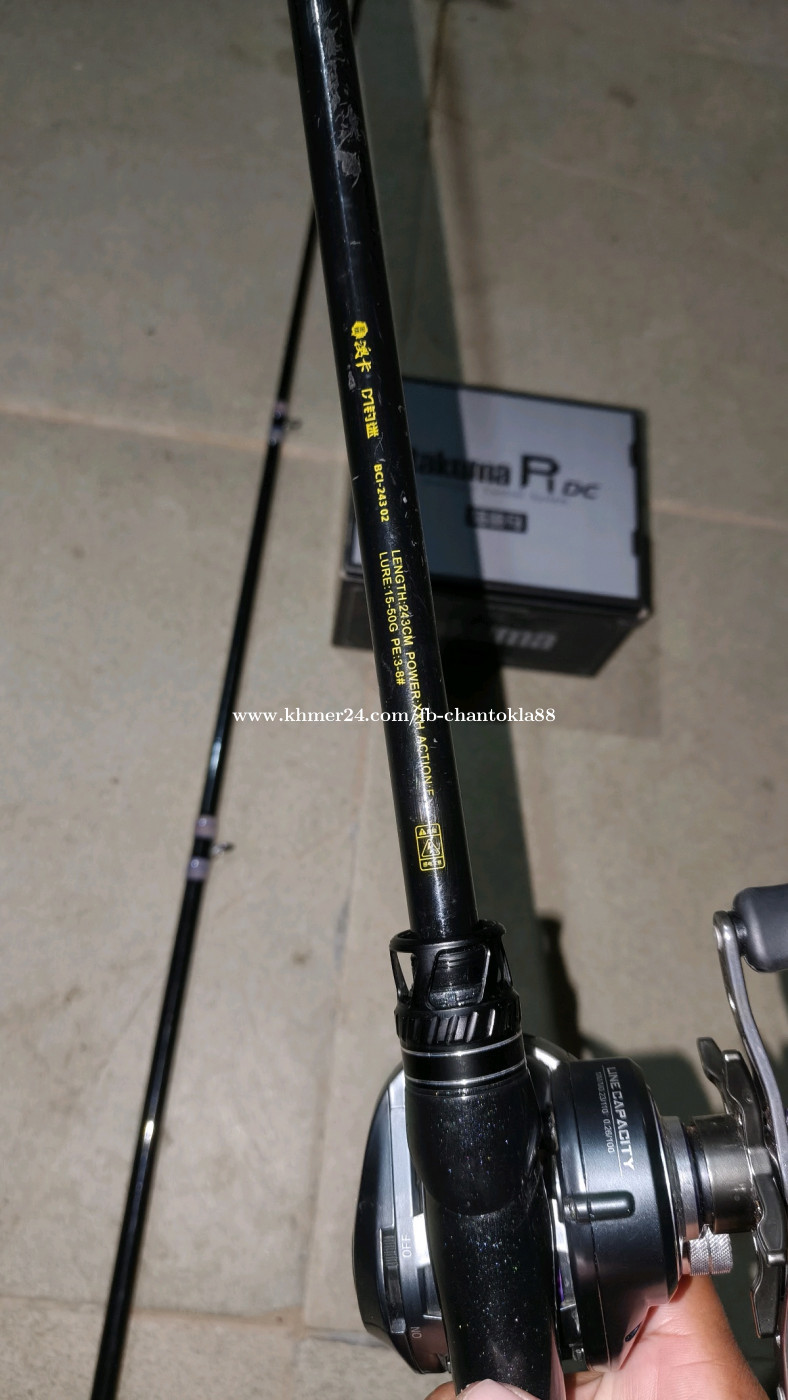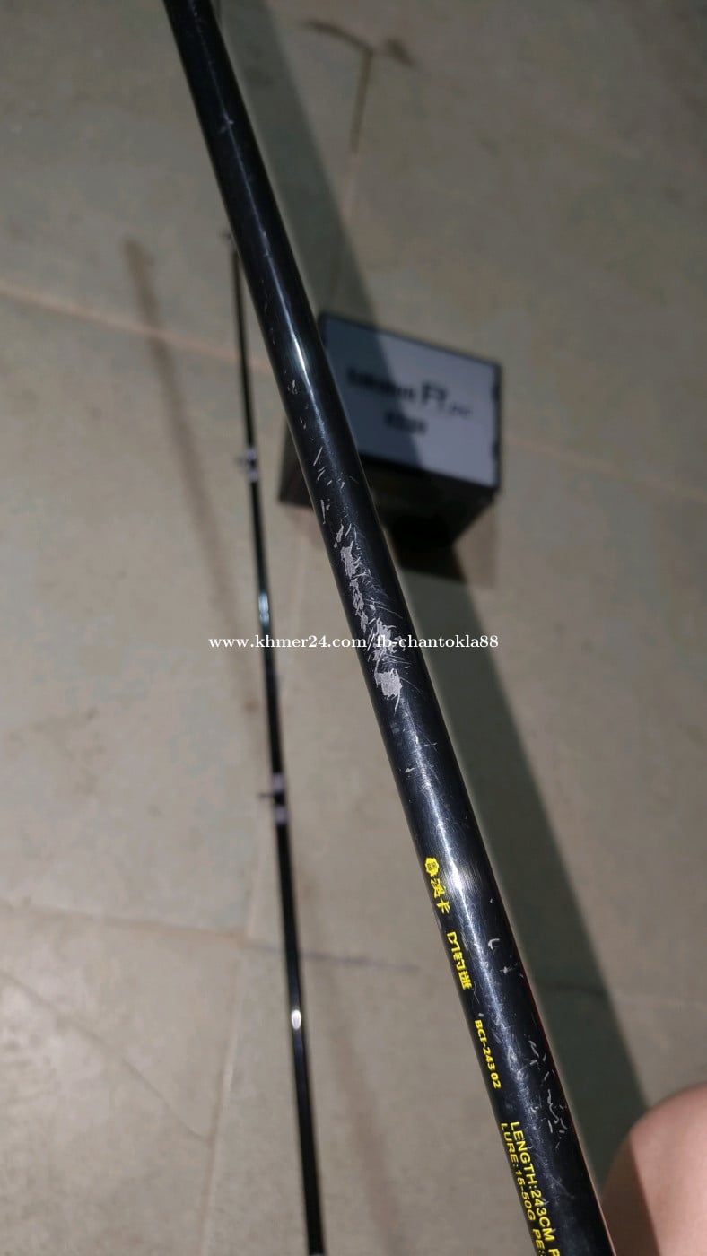 ដងប្រវែង2.43 ចុងទំងន់នុយ15-50ក្រាប(16-35lbs) កម្លាំងទប់15គីឡូ (ក្រវិល Fuji ត្រិះ) អត់សុីខ្សែ ដុំម៉ាក Takuma P1 DC នៅស្អាត 99% បើយកតែដុំ40$ បើយកតែដង20$ បើយកទាំងអស់55$