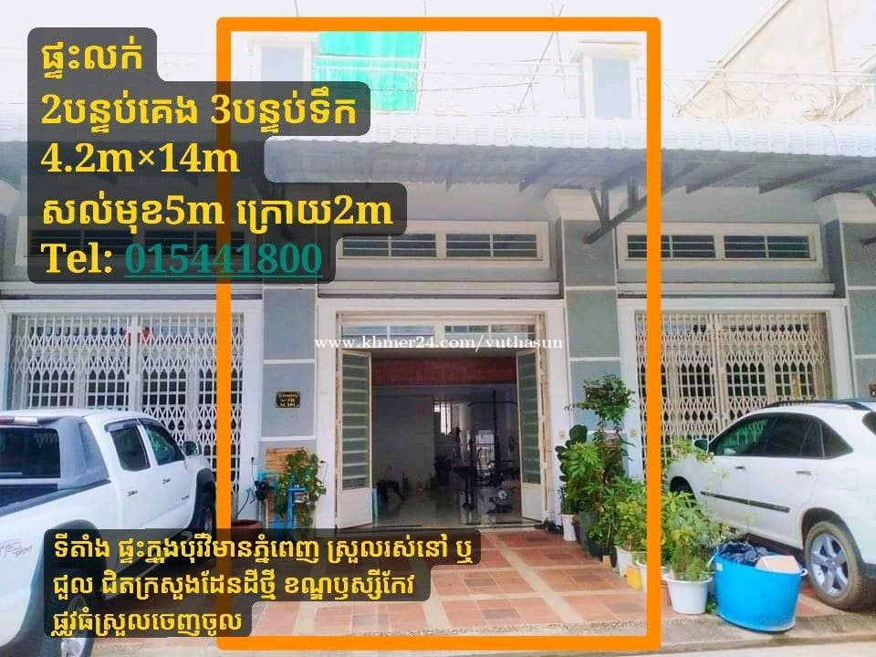 ផ្ទះលក់ 4.2*14 លក់ក្រោយ2 សល់មុខ5 ផ្លូវមុនផ្ទះ8(ផ្លូវទាល់) ក្នុងបុរីមានការរស់នៅអ៊ូអរ ខលចចារផ្ទាល់015441xxxClick To Call
