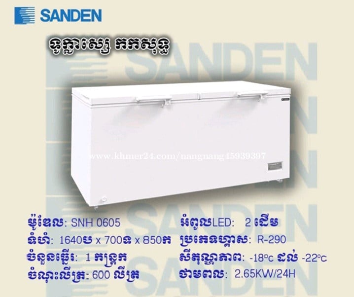 ទូក្លាស្សេកកសុទ្ធ SANDEN (មួយទឹកស្អាត) ខ្នាត 1.64ម x 0.70ម x 0.85ម ចំណុះ 600លីត្រ / គុណភាពទូនៅស្អាត 90% / ទូដំណើរការធម្មតា មិនធ្លាប់ជួសជុល លក់ធូរៗប្រញ៉ាប់លុយបងប្អូន ☎️016583xxxClick To Call