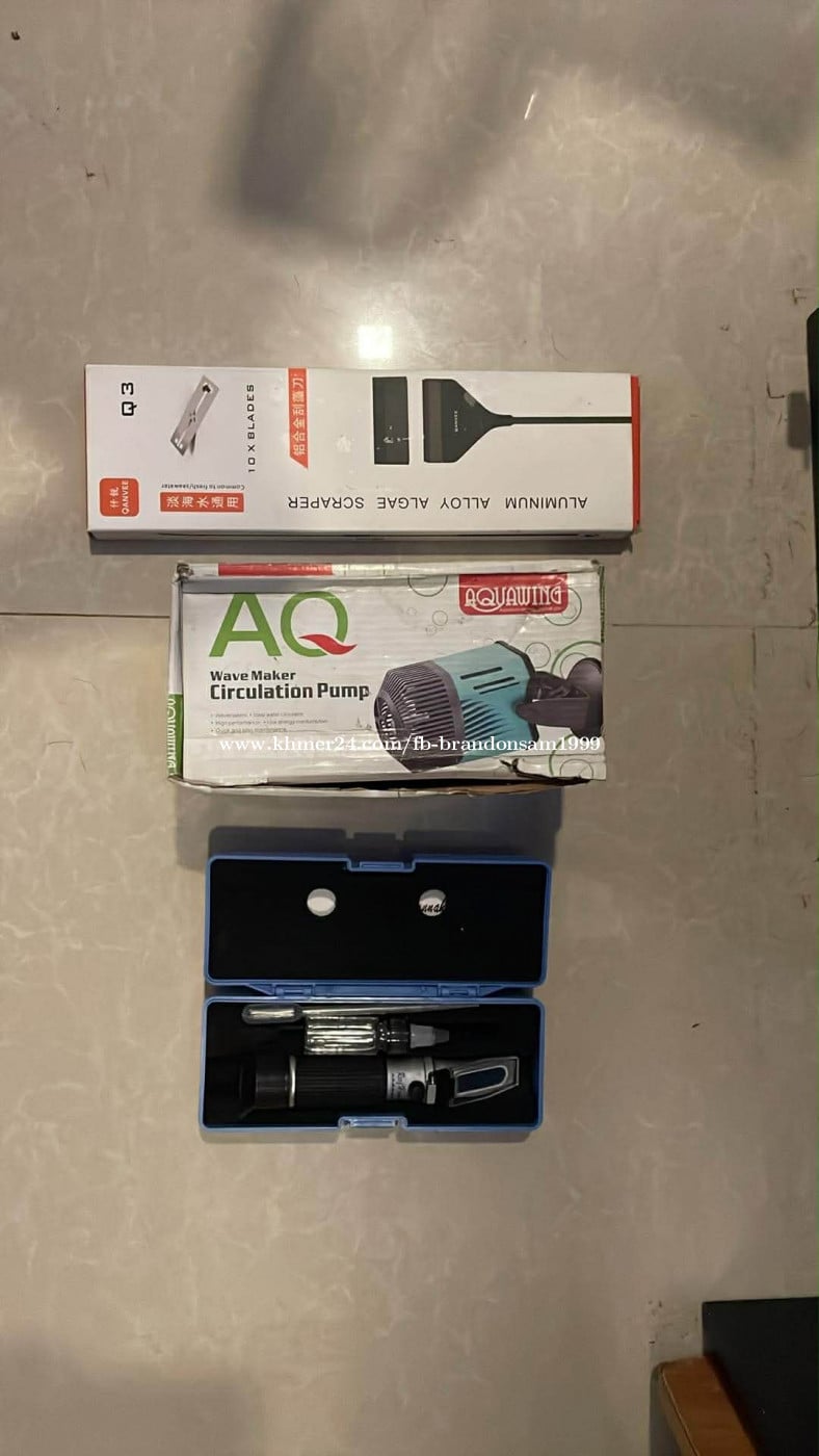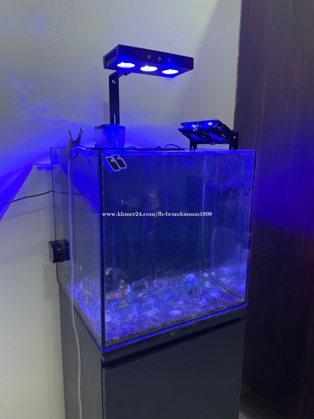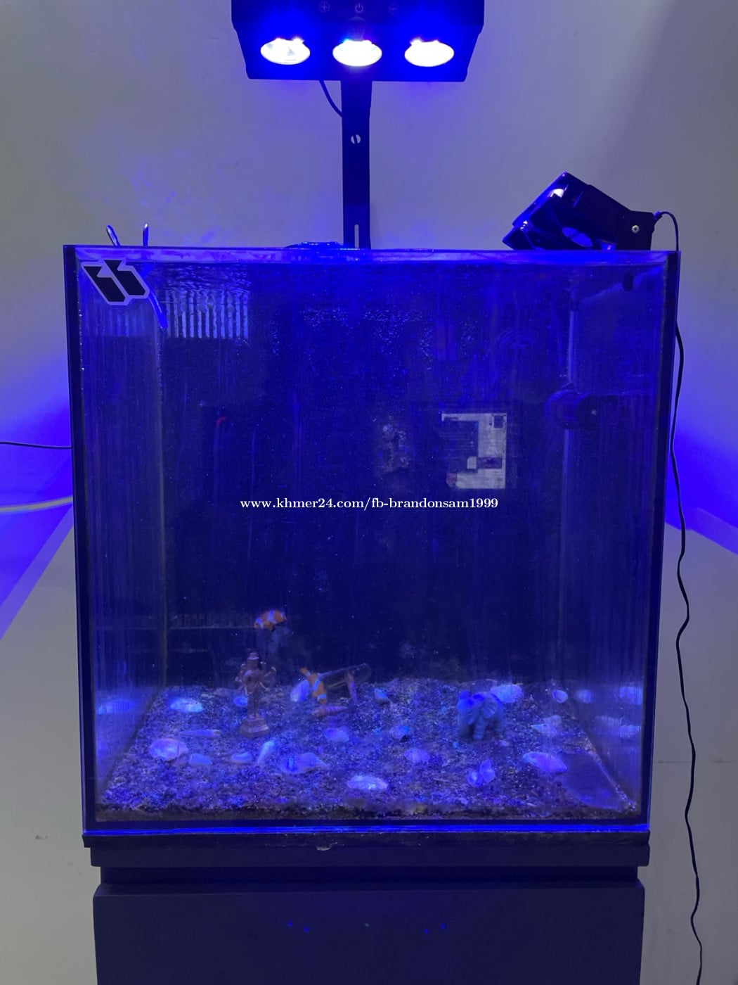 ទំហំរ 45x45cm មានសម្ភារះទាំងអស់ Trimmer, Water pump, Wave Maker, LED, Cleaner Stick, Waver Maker for Mix Salt water, Refractometer, AC