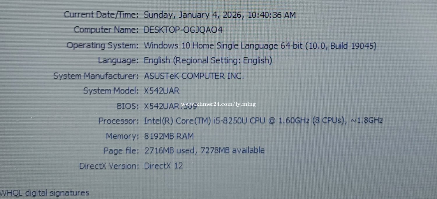 Asus A542U 95% ស្ទើររូបរាងតែម៉ាស៊ីនមិនមានបញ្ហា Core i5-8250U 1.6GHz 8CPUs Ram 8G,SSD 128G 15.6" FHD original adapter ថ្ម 3-4ម៉ោង Windows license ទាក់ទងtelegram ដើម្បីតបរហ័ស: Telegram https://t.me/Lyn88998 0318888xxxClick To Call metfone