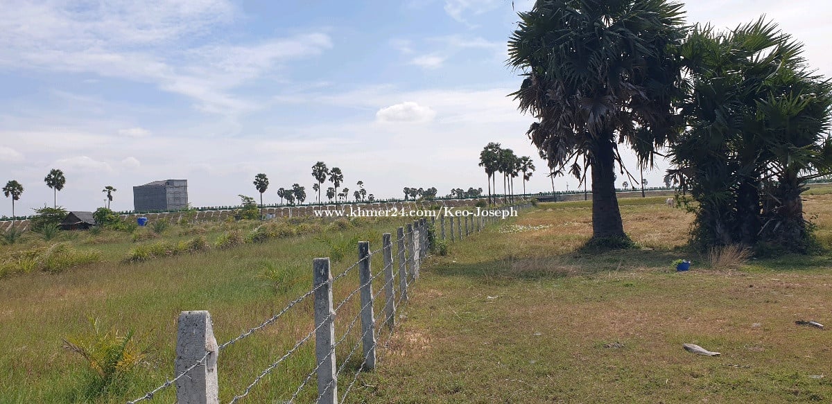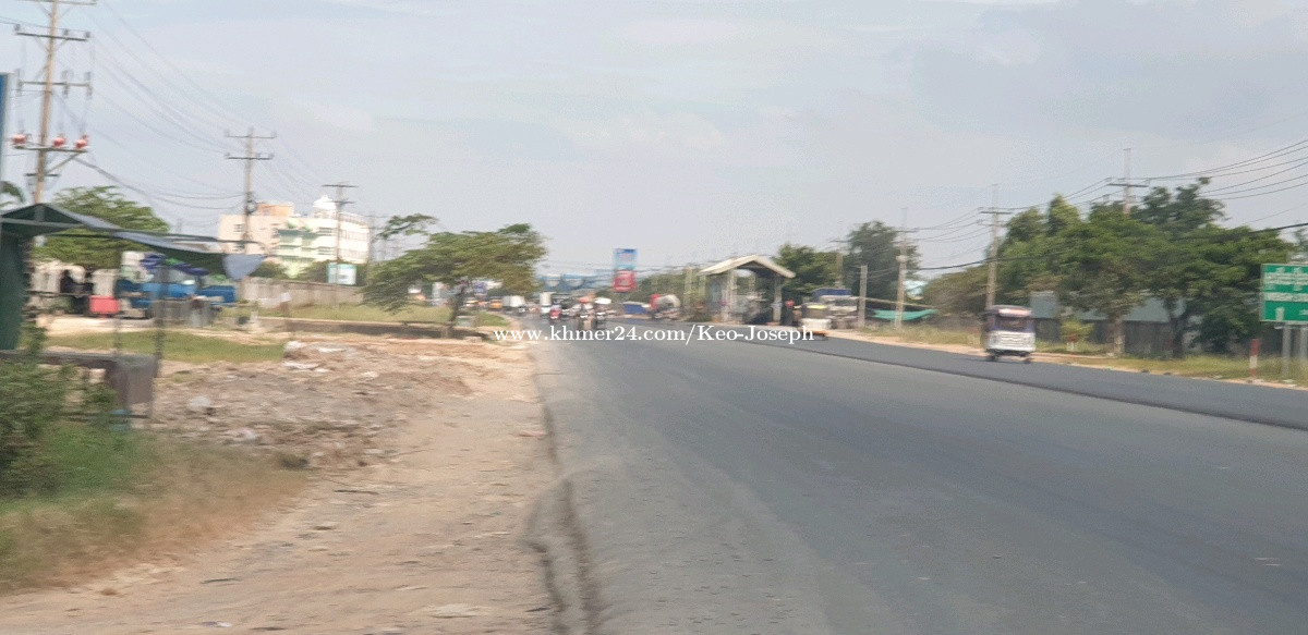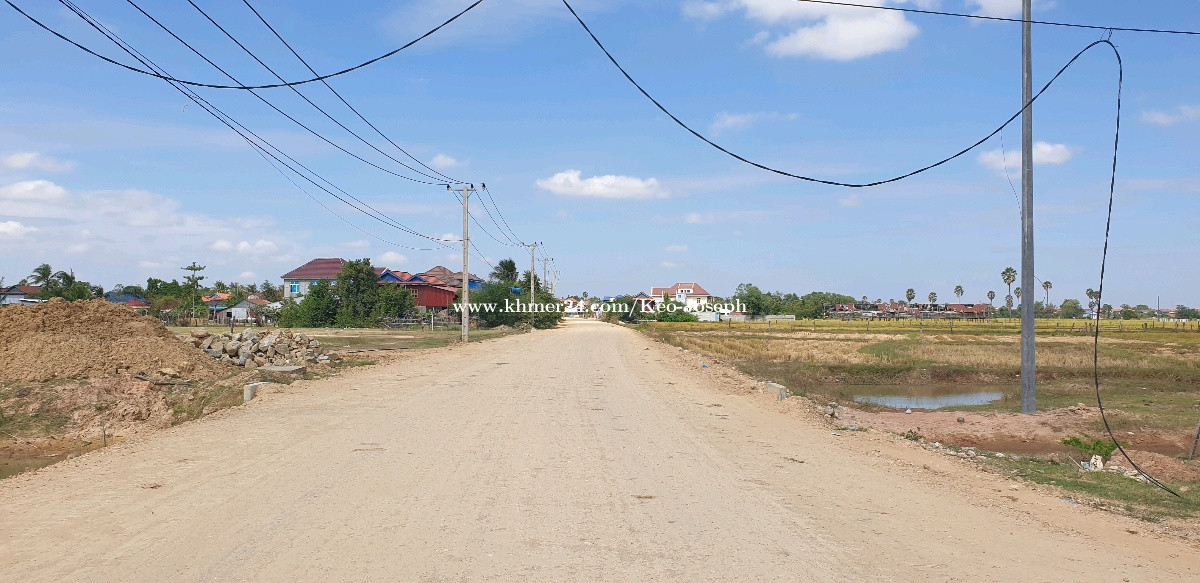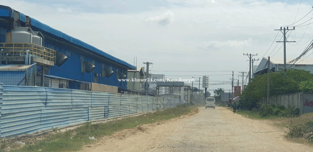 ដីលើផ្លូវ 60 ម៉ែត្រក្បែរផ្លូវល្បឿនលឿនភ្នំពេញកំពង់សោម។ ដីសម្រាប់ធ្វើឃ្លាំងរោងចក្រនិងផ្ទះបុរីបាន។