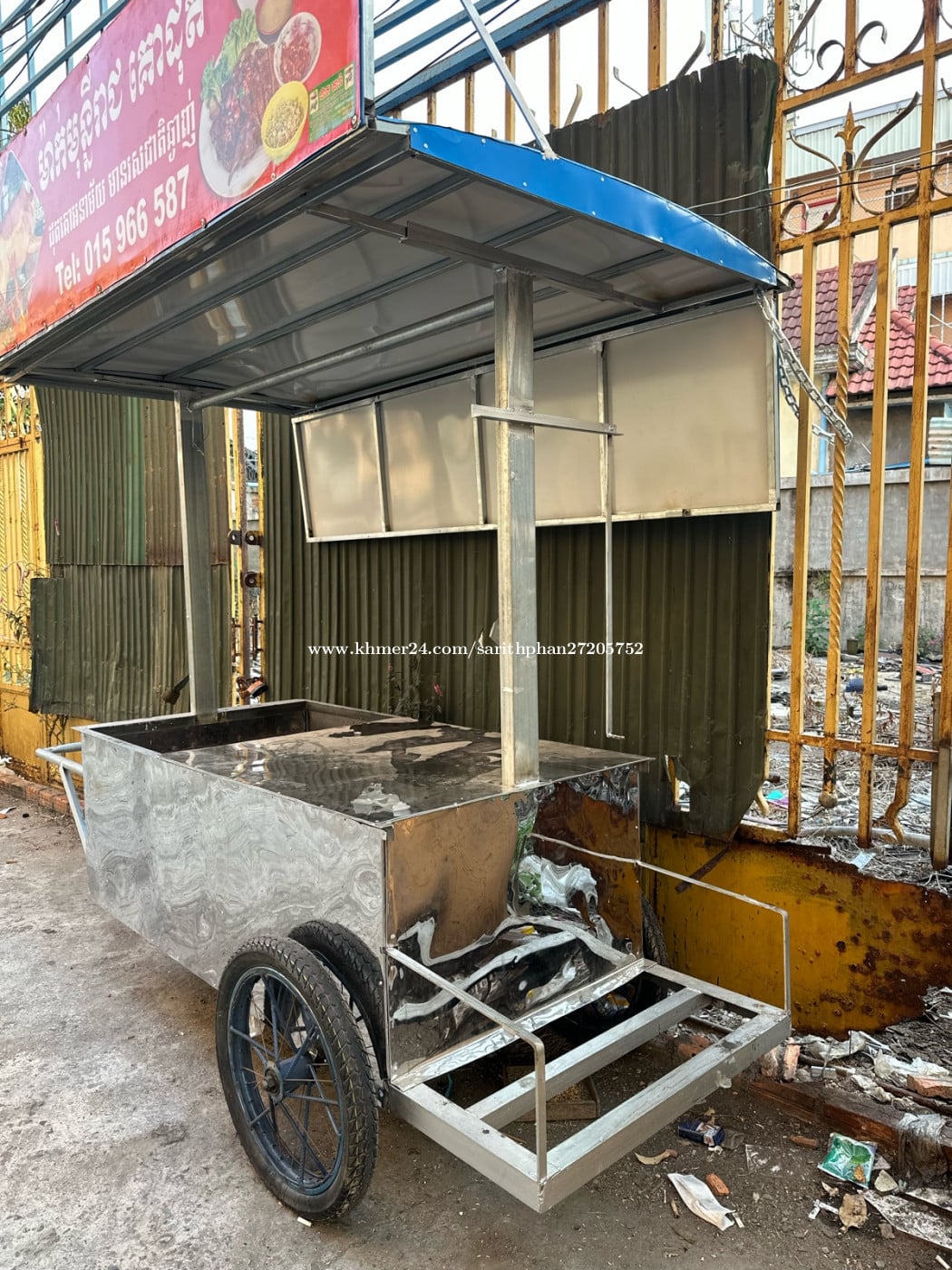 [លក់រទេះគោដុត នៅថ្មីស្អាត ៩៥%] ចង់ប្តូរមុខរបរថ្មី ចង់លក់ចេញវិញក្នុងតម្លៃសមរម្យ៖ • ស្ថានភាព៖ រទេះនៅរឹងមាំល្អ ដែកស្អាត មិនពុក មិនច្រែះ។ • លក្ខណៈពិសេស៖ មានកង់ធំងាយស្រួលរុញ មានដំបូល និងបដាស្រាប់ (ទិញទៅអាចលក់បានភ្លាម)។ • តម្លៃ៖ 250 $ (ចរចាបាន) • ទីតាំង៖ ភ្នំពេញ សង្កាត់ទឹកថ្លា ជិតស្ពានដីហ៊ុយ ម្តុំសាលារៀនបុរី100ខ្នង បងប្អូនដែលមានបំណងចង់ចាប់ផ្តើមអាជីវកម្មគោដុត អាចមកមើលផ្ទាល់បាន។ លេខទូរស័ព្ទ៖ 015966xxxClick To Call ;016206xxxClick To Call ; 011922xxxClick To Call