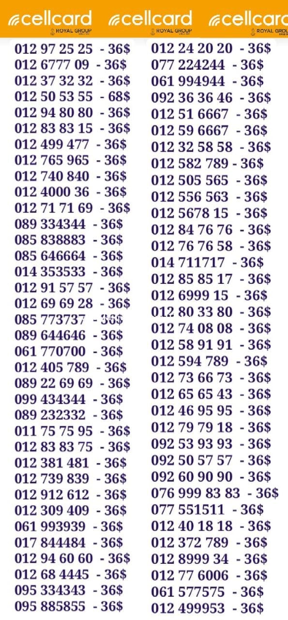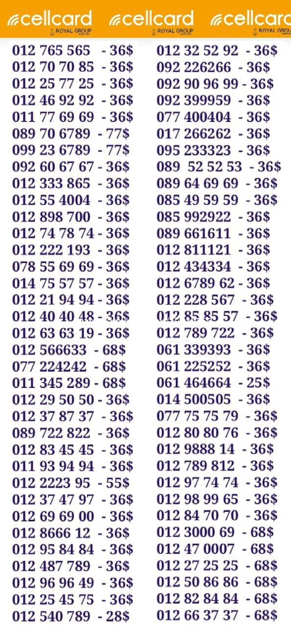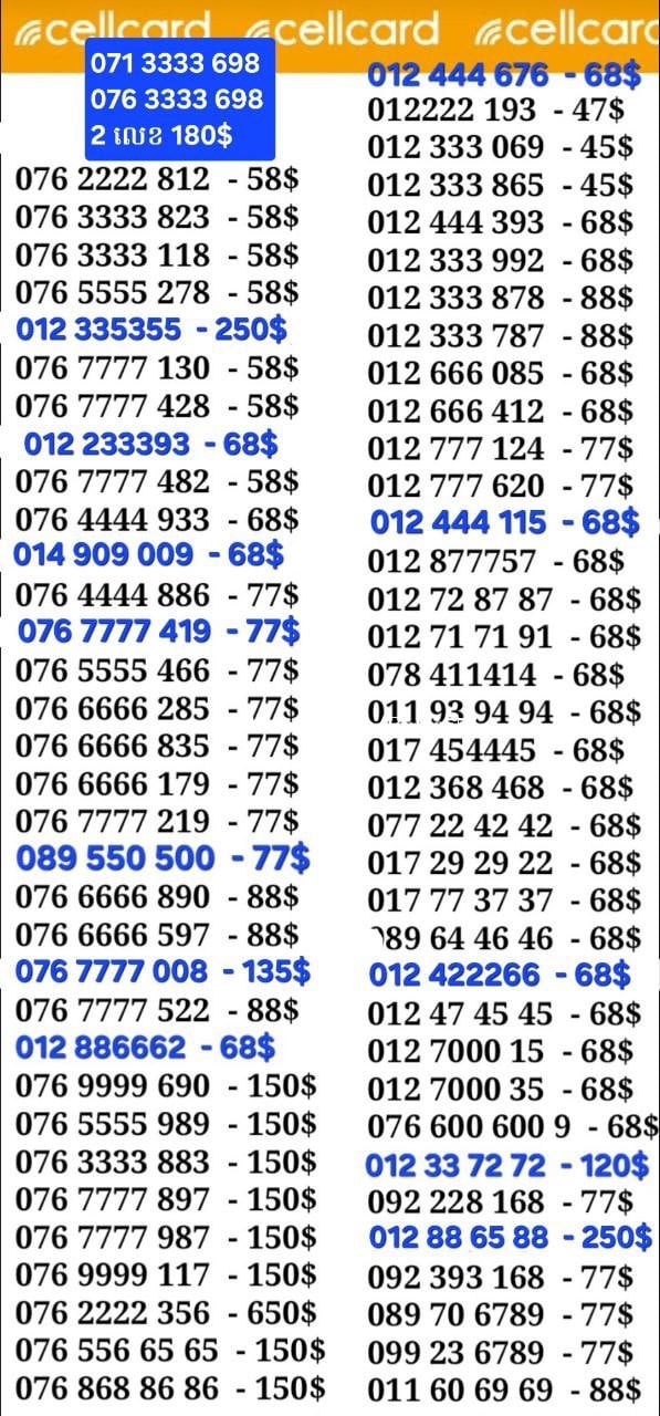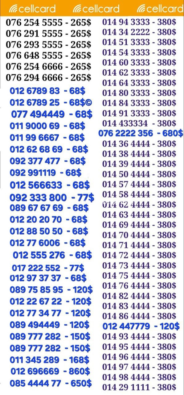 លក់លេខការេសែលខាត cellcard តម្លៃសមរម្យ🌹🌺 010 501 555 telegram 012 555 702 ភ្នំពេញ។ 📥 https://t.me/Bottra555