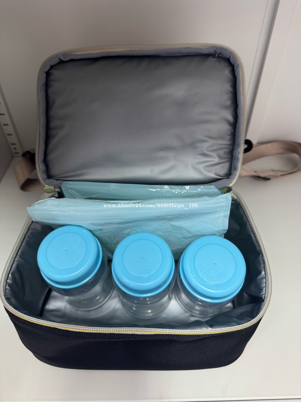 លក់វិញកាបូបរក្សាទឹកដោះ ថ្មី 90% មួយឈុត (កាបូប១ ដបរំលែកទឹកដោះ៣ ជែលទឹកកក2