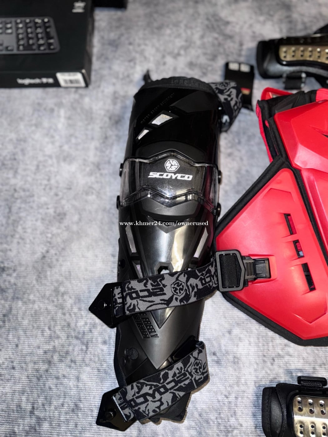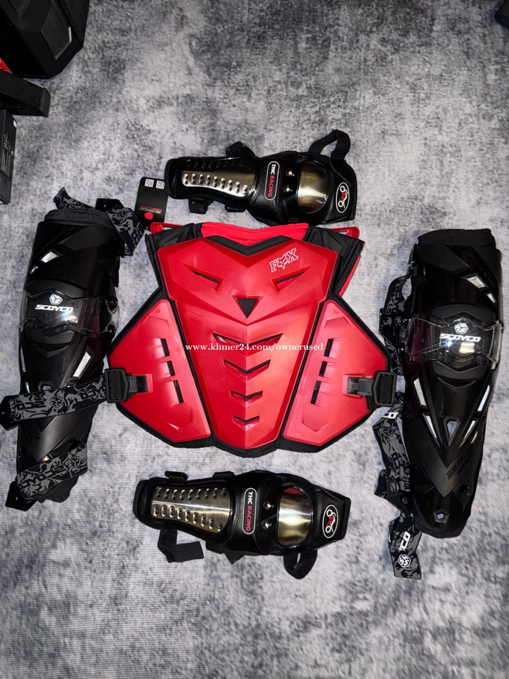 ឈុតម៉ូតូត្រៃការពារ នៅថ្មីមិនដែលប្រើ - ការពារខ្លួន - ការពារក្បាលជង្គង់ - ការងារកែងដៃ