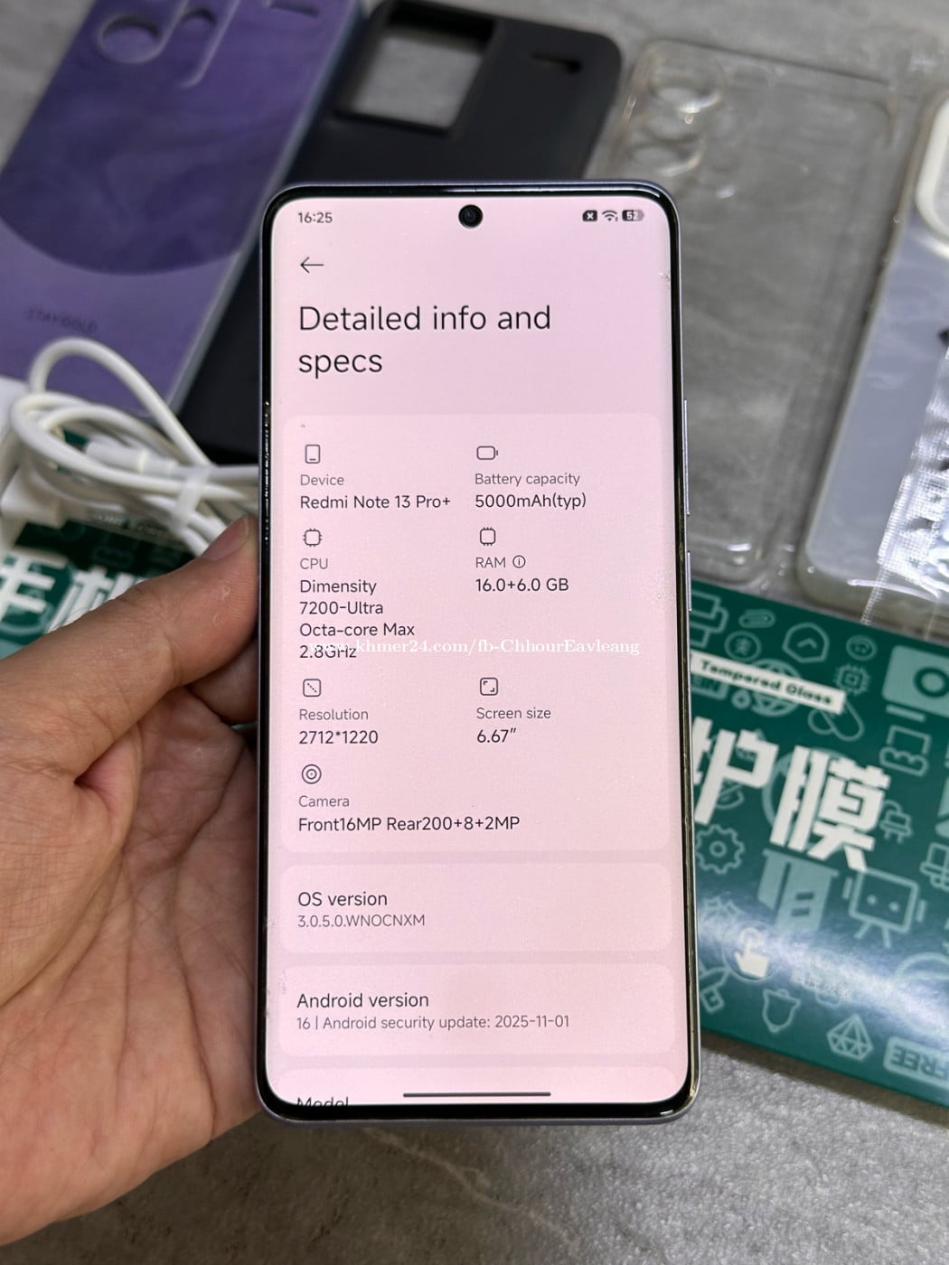 លក់ Redmi Note 13pro+ 99% original Ram 16+6 Storage 512g China version តួនៅស្អាតទាំងអស់ អេក្រង់ហ្សុីន ម្ចាស់ប្រេីថែ ដាក់ស្រោមការពាររហូត មិនដែលធ្លាក់ មានដុំឆ្នាំងសាកថ្មី ថែមស្រោមការពារ និង ស្រ្គីន Tel: 069292xxxClick To Call