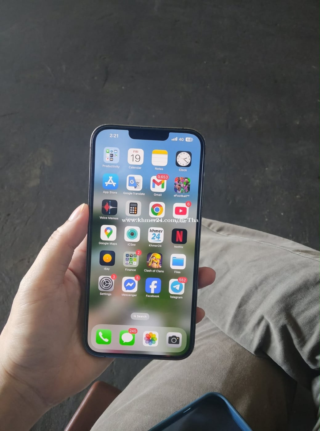 លក់ 13 Pro max LL/A 128gb ធ្លាប់ដូរអេក្រង់តែដាក់ហ្ស៊ីន មានស្កេន ថ្ម 83%