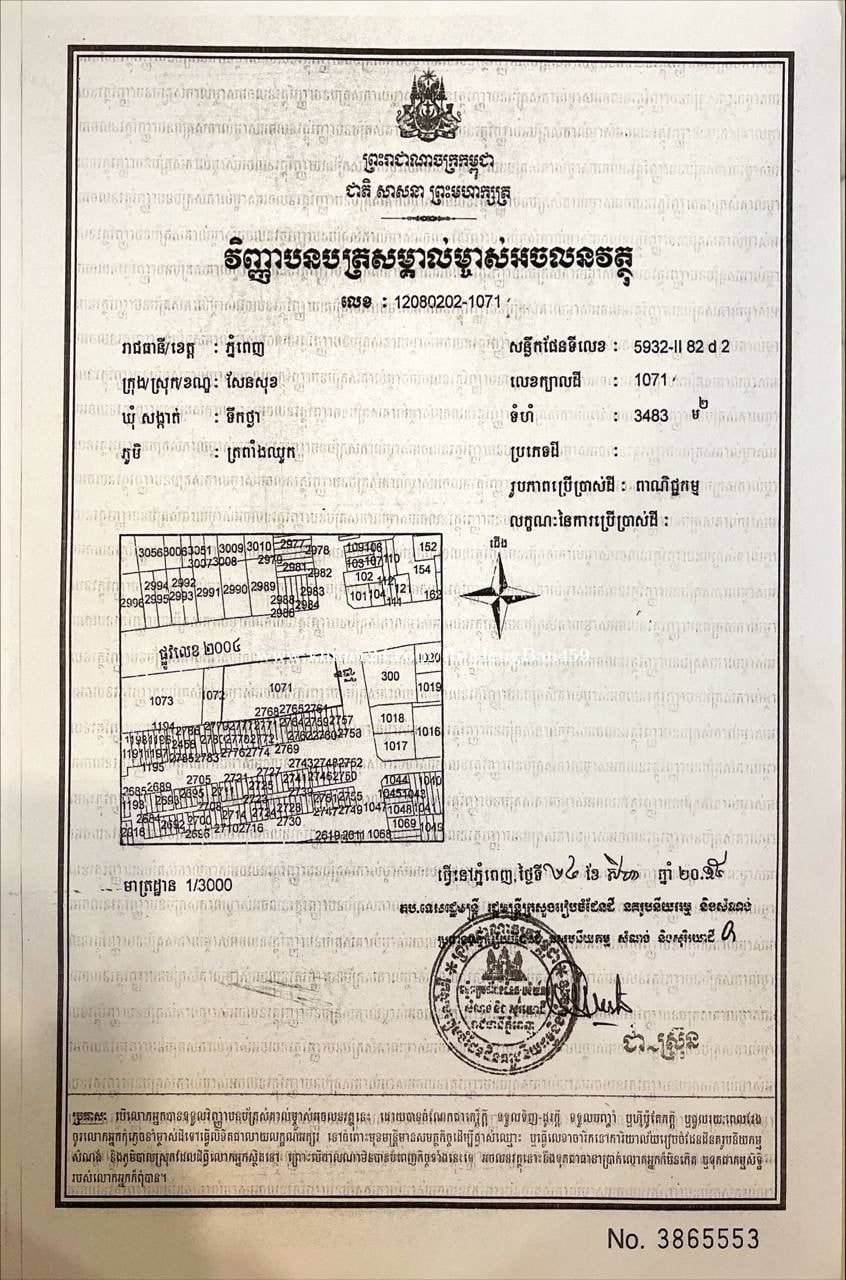 ដីលក់ការាសសាំងបន្ទាន់ជាប់ផ្លូវ2004 »ក្បាលដី 88x41 (ម្ចាស់ផ្ទាល់) »(3483m2) 3000$1m2ចរចារចុះបានតិចតួច »ស្ថិតនៅ ឃុំទឹកថ្លា ស្រុកសែនសុខ ក្រុងភ្នំពេញ 📱012636xxxClick To Call 📱070636xxxClick To Call https://maps.app.goo.gl/Wvp6FZJXybsiiaM89?g_st=ic