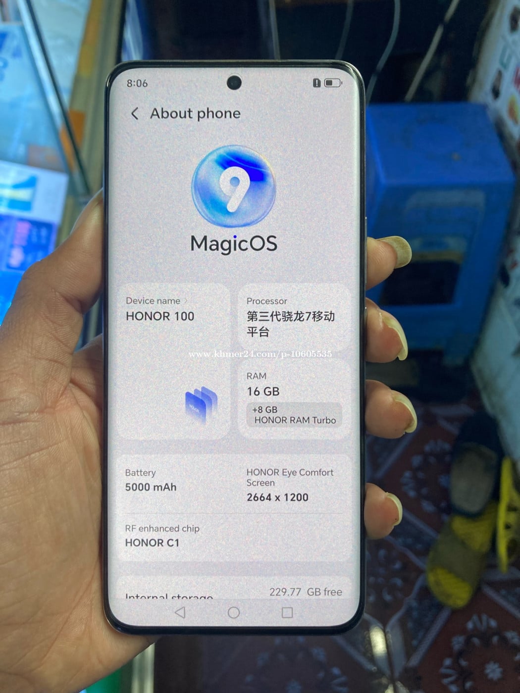 លក់ Honor 100 5G ស្អាត98% 16/256 សានុំសុីន