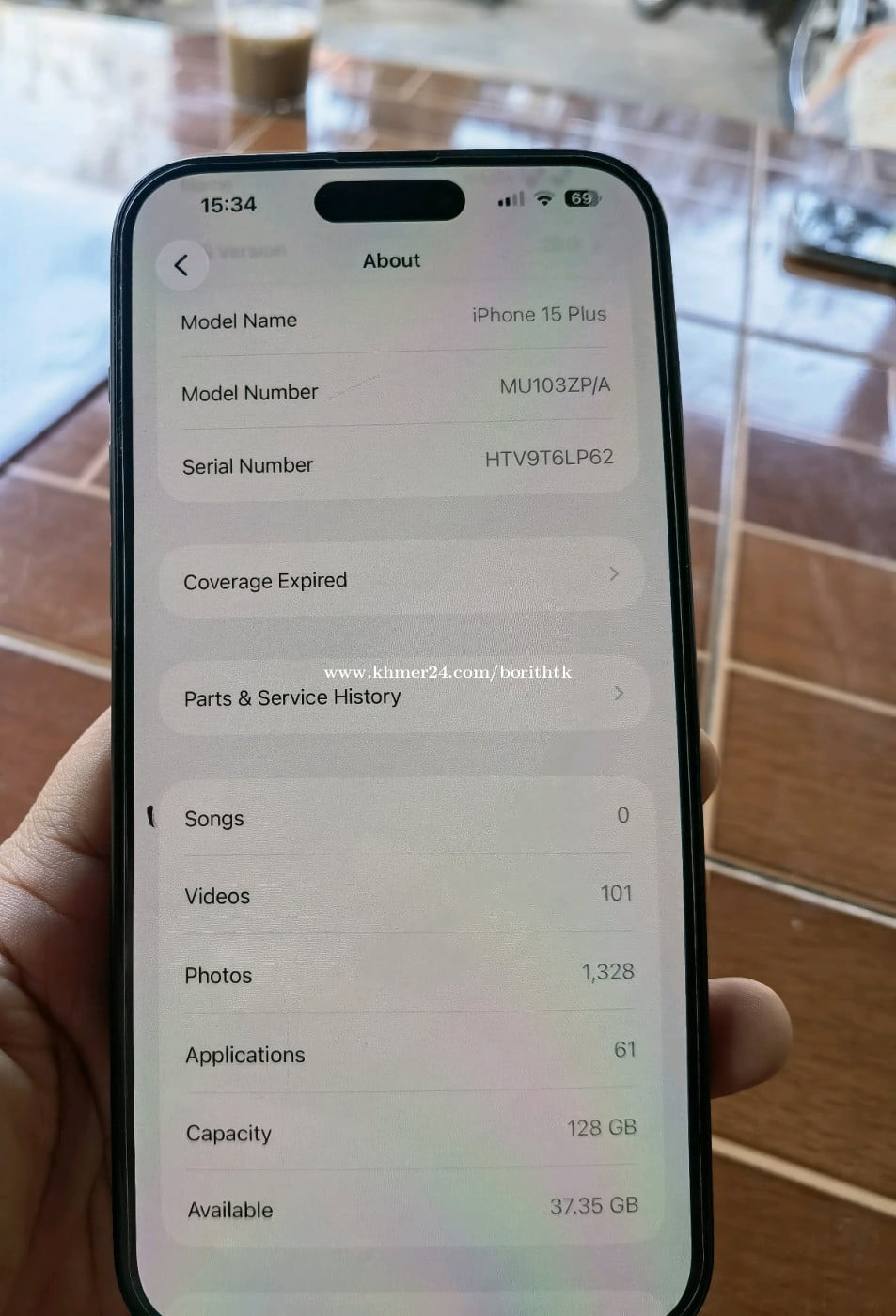 លក់ Iphone15 plus ZA ស៊ីម២ ១២៨g នៅស្កេនឣេក្រងដូចរូប