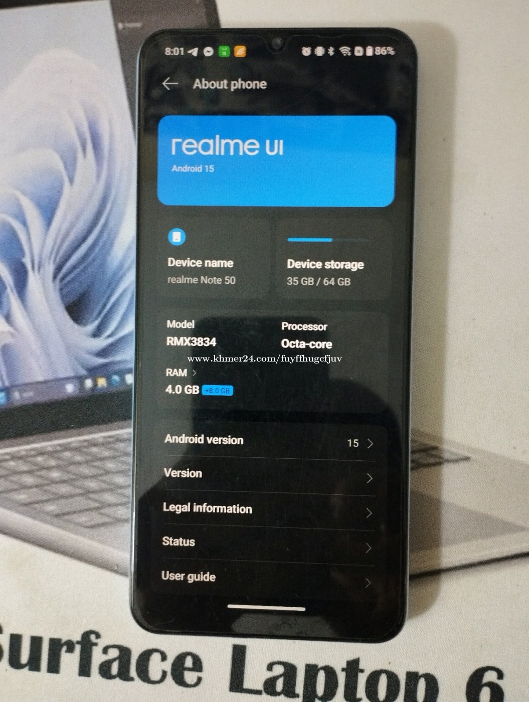 Realme Note 50 ទូរស័ព្ទប្រើផ្ទាល់ខ្លួននៅស្អាត 96% Ram 4G ROM 64G ថ្មកាន់ល្អប្រើបាន ២ថ្ងៃ កាមេរ៉ាច្បាស់ល្អ