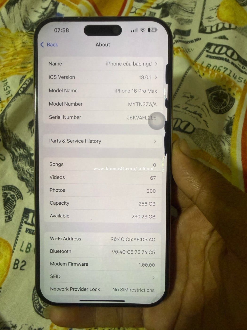 លក់16pro max ZA sim2 256g pass sim& wifi ជាំអេក្រងខាងដូចរូបប្រេីអែមដាក់ id ដោនបាន all ចង់បានឆាត0963544xxxClick To Call ; 061744xxxClick To Call