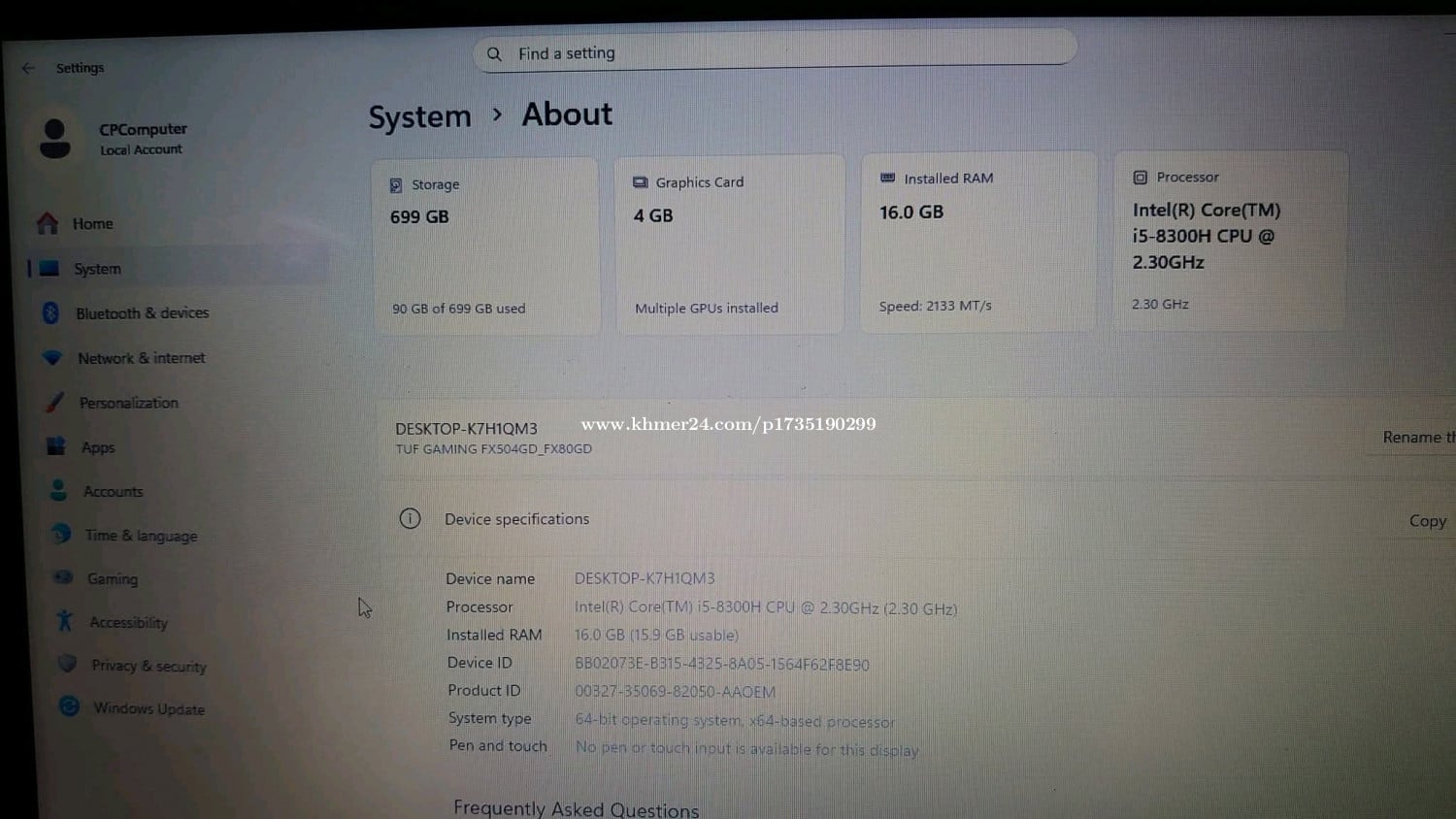 លក់260$ CPU core i5 8th RAM 16G SSD M2 256G+HDD 500G NVIDIA GeForce GTX 1050 4G Battery 🔋 098858xxxClick To Call 0976662xxxClick To Call