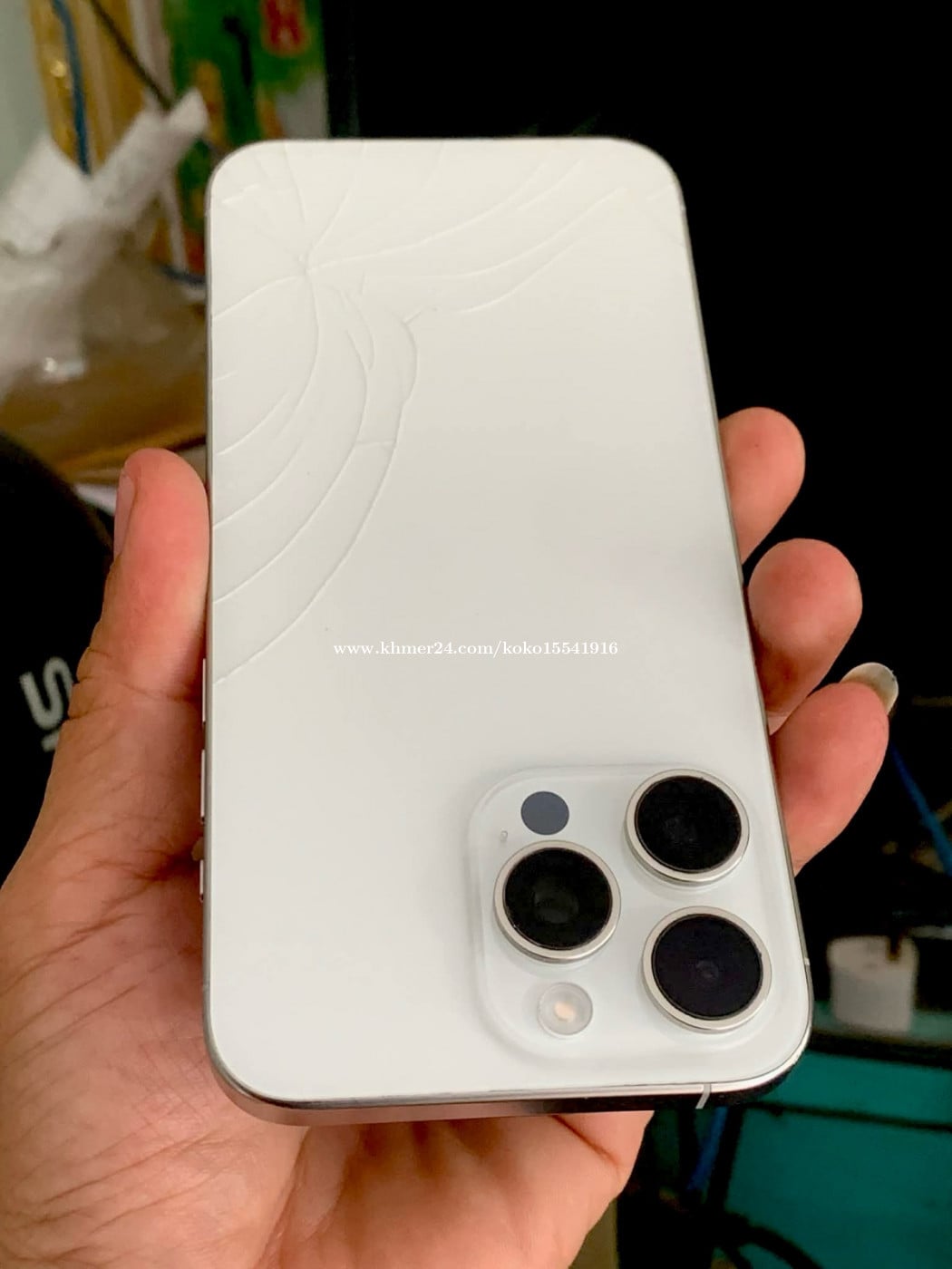 លក់iP 15 Pro Max 256g CHដាក់បានsim2បែកខ្នងដូអេក្រងសុីនឆ្នូតគៀននឹងជាំរាងញាក់ព្រិចៗអត់ស្កែនដូចរូបចុៈបានតិចទេ