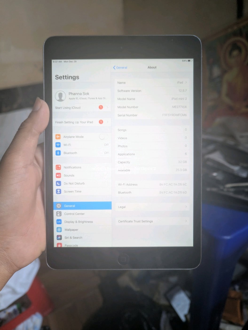 iPad Mini2 32G Wifi only (បញ្ហាបិទគ្រឿងបានសាកថ្មចូល) លក់25$ (Telegram 069740507 វេងស្រេង)