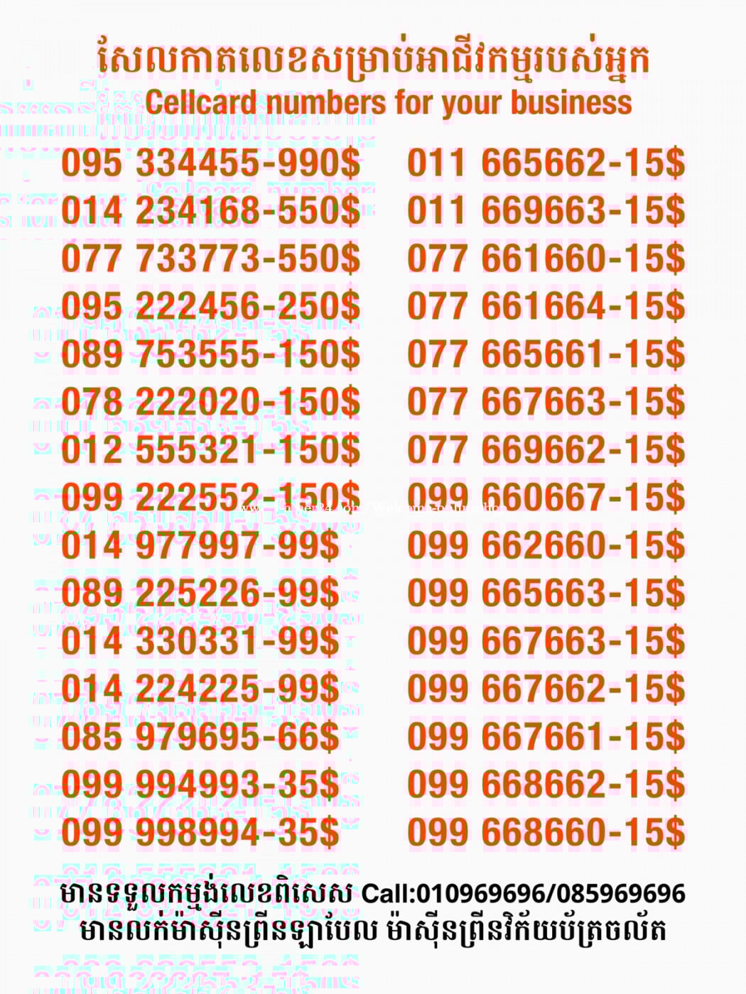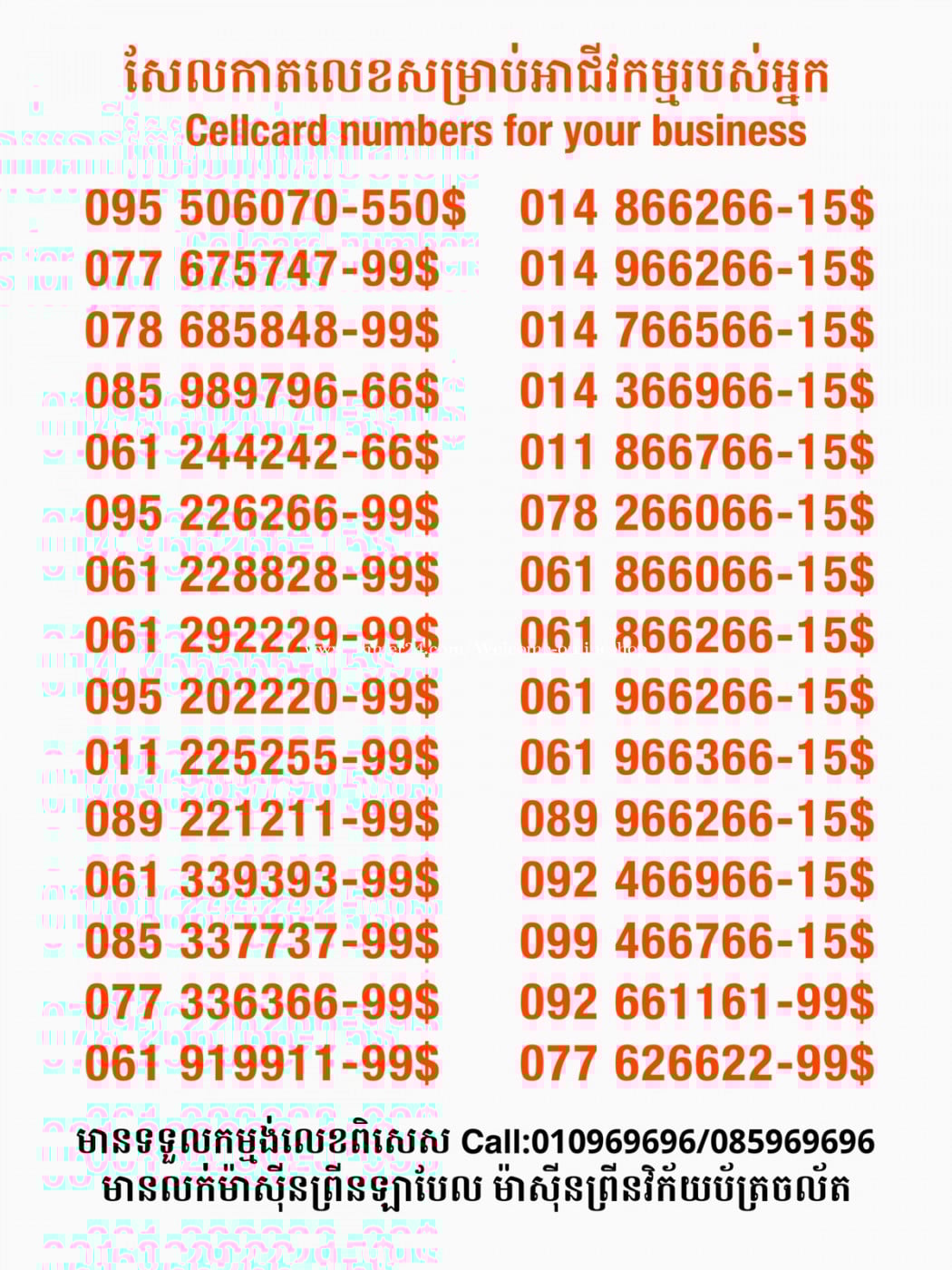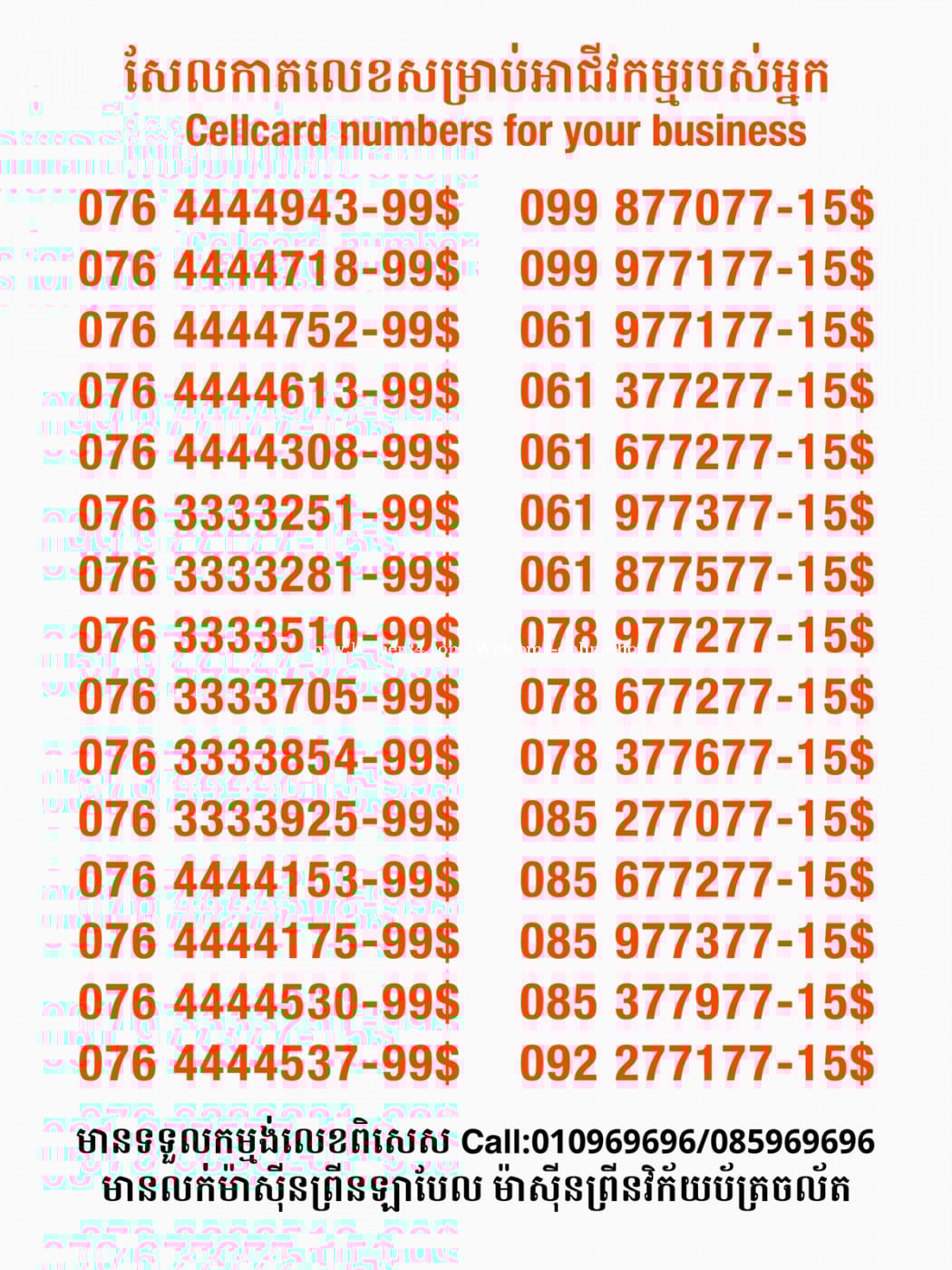 មានលក់លេខពិសេស មានទទួលកម្មង់លេខពិសេស មានលក់ម៉ាស៊ីនព្រីនឡាបែលចល័ត មានលក់ម៉ាស៊ីនព្រីនវិក័យប័ត្រចល័ត មានលក់សម្ភារៈប្រើប្រាស់ក្នុងគ្រួសារ Smart Prime II 1=30$ Smart hero 1=40$ ទូរសព្ទថ្មីក្នុងប្រអប់ លក់ធូរៗរហូតអស់ពីស្តុក អាចប្រើជាឧបករណ៍សម្រាប់ស៊ែរ wifi បាន ទំនាក់ទំនង(ខ្មែរ | English | 中文):010969696 | 085969696 Telegram: https://t.me/W9696 Telegram group: https://t.me/konkonnada អាសយដ្ឋាន:ផ្ទះលេខ២៣ ផ្លូវបេតុងលេខ១ ភូមិទួលពង្រ សង្កាត់ចោមចៅ ខណ្ឌពោធិ៍សែនជ័យ រាជធានីភ្នំពេញ ទីតាំង https://goo.gl/maps/8moqW4iTHUfJEvWQ9 ដើម្បីស្វែងរកលេខអាជីវកម្មដែលលោកអ្នកពេញចិត្ត សូមចូលទៅកាន់:https://www.khmer24.com/Welcome-onlineshop