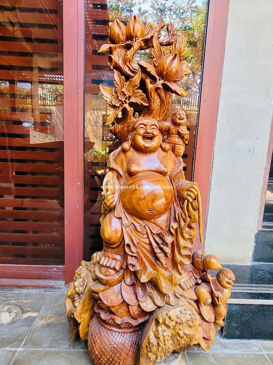 កម្ពស់ 1.05m x 0.49m លោកតារីករាយហៅទ្រព្យ ធ្វើពីឈើបេងខ្មែរ 700$ (ចចារបាន)