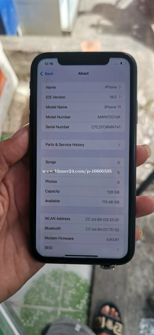 លោក iPhone 11នៅស្អាត97% អត់ស្គេន 95$