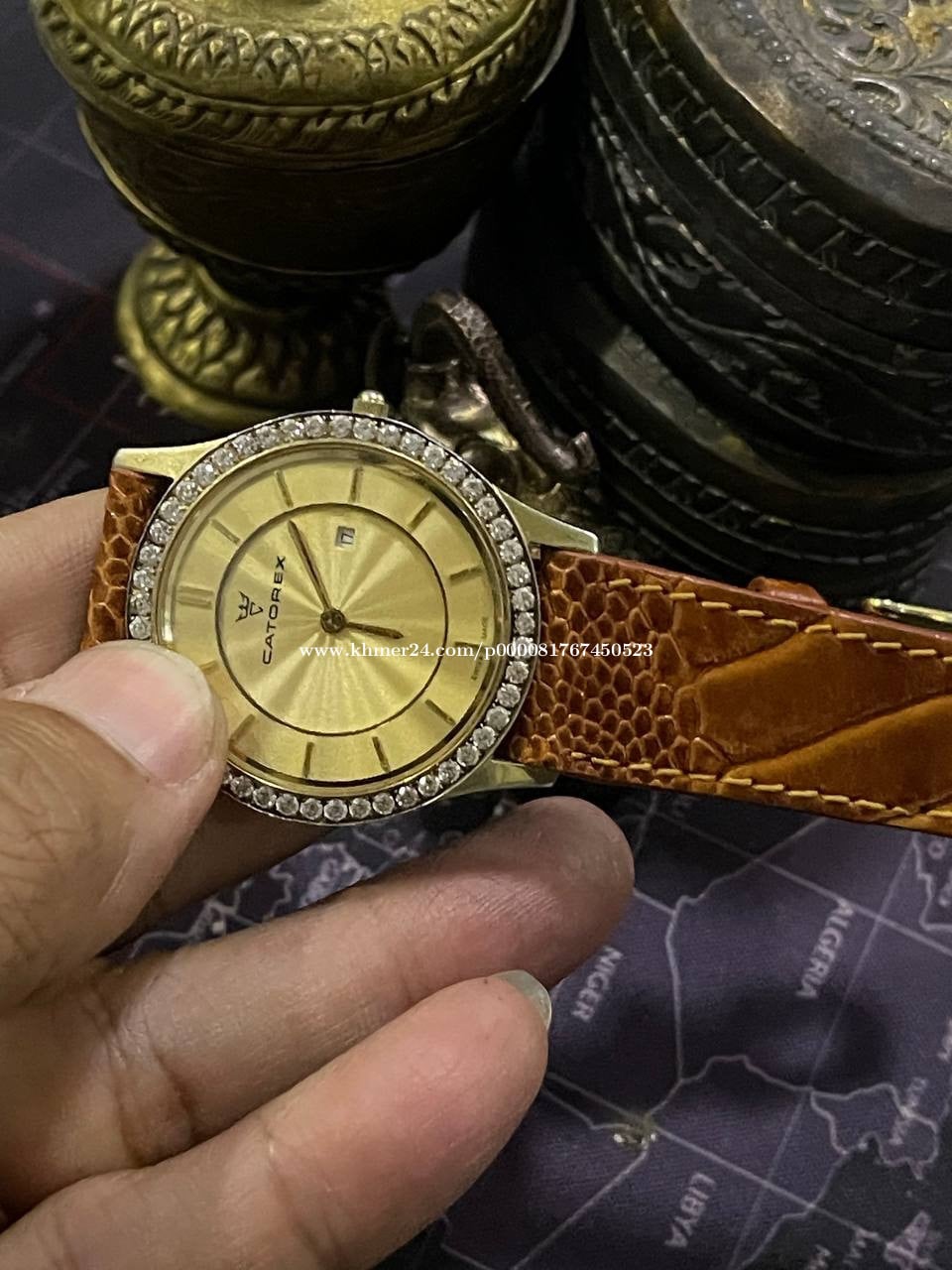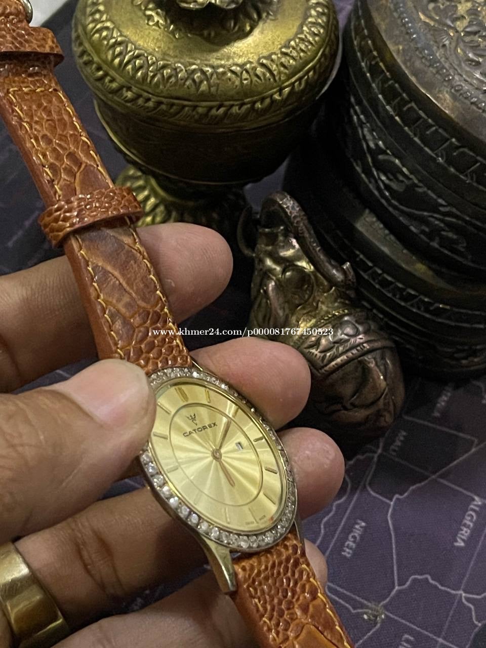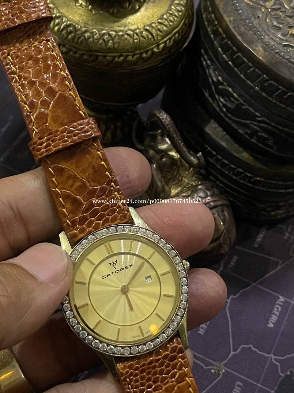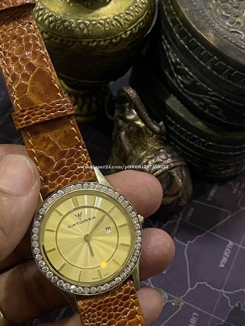 នាឡិការនារីត្បូងដាំដៃ ម៉ាកCatorex zi original សម្រាប់នារី ផលិនៅស្វីស ម៉ាសុីពណ៍មាស ផ្លាកទិញ