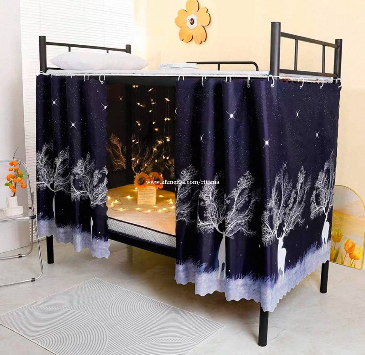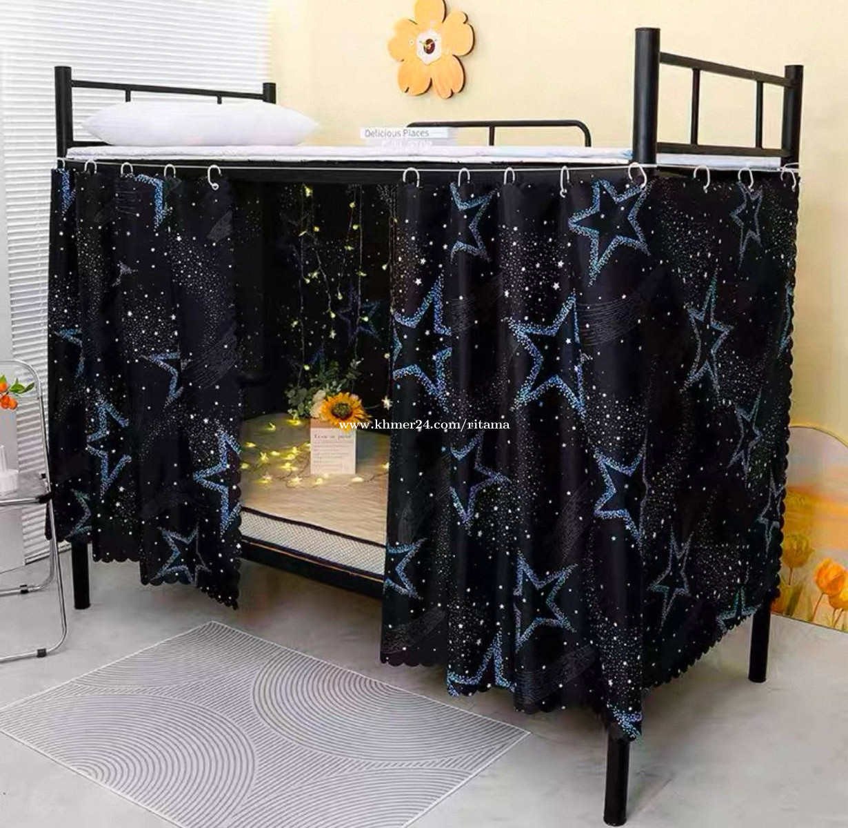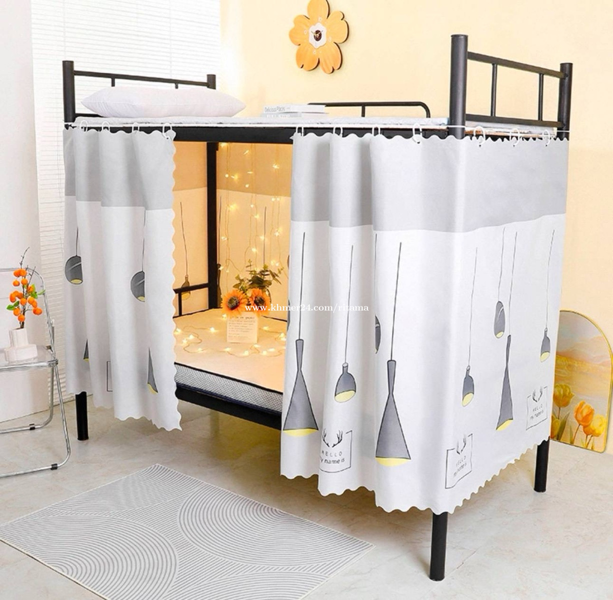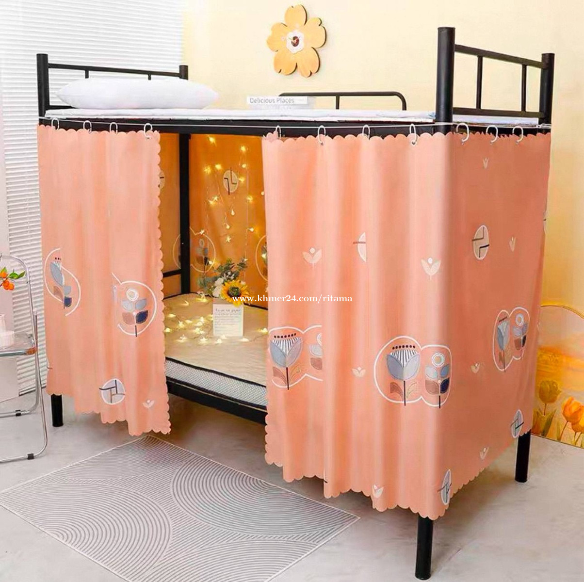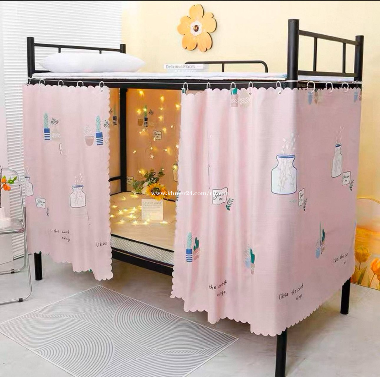 មួយឈុត 3$ វាំងនន1ផ្ទាំង កំពស់ 1.15m x ទទឹង2m ខ្សែ ទំពក់