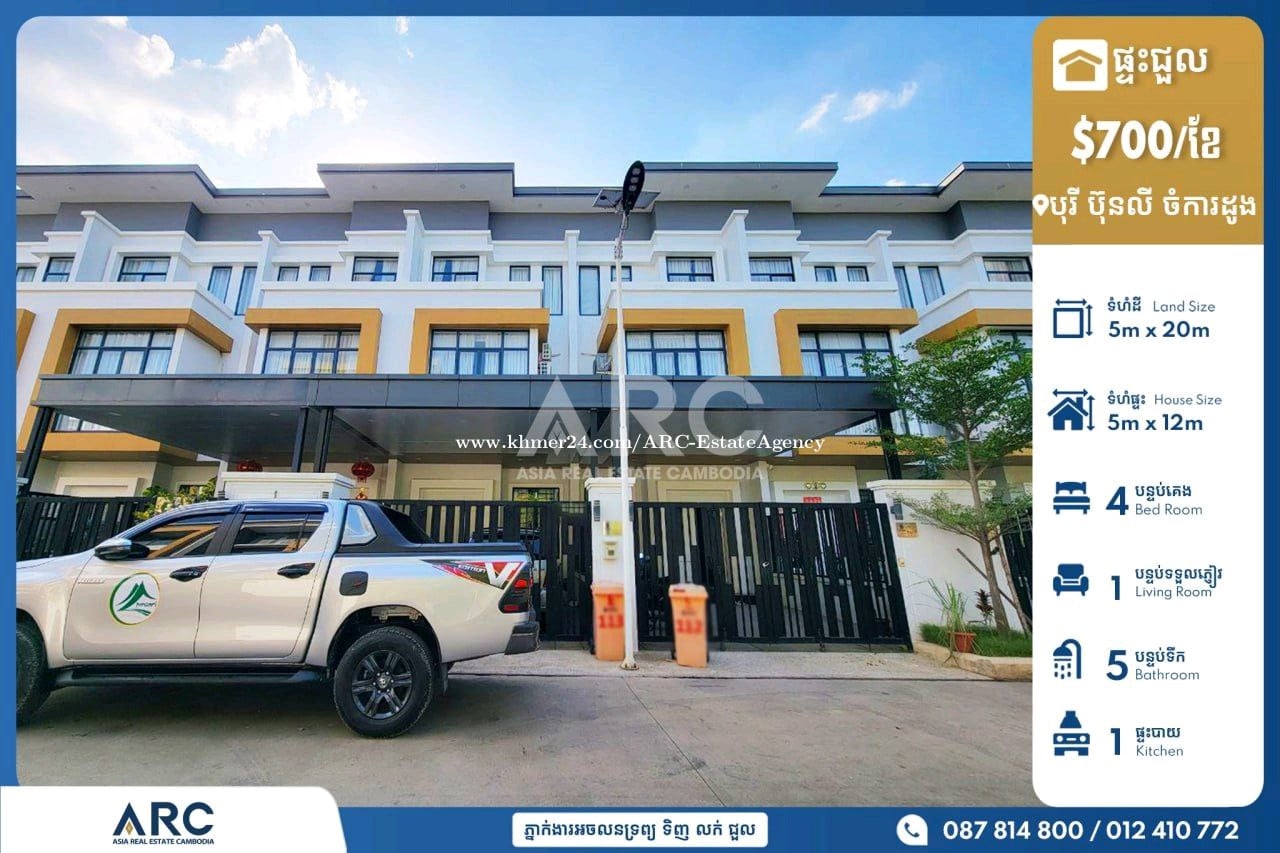 🏘️ វីឡាកូនកាត់(LB) សម្រាប់ជួលនៅបុរី ប៊ុនលី (ចំការដូង) *តម្លៃ: 700$(ចចារ) *ទំហំផ្ទះ Size House: 5m x 12m *ទំហំដី Size Land: 5m x 20m *បន្ទប់គេង Bedroom: 4 *បន្ទប់ទឹក Bathroom: 5 👉សម្ភារ:ពេញស្រាប់ 👉ផ្ទះថ្មីស្អាត ជិតផ្សារ សាលារៀន មានសន្តិសុខ២៤ម៉ោង មានផាសុខភាព សុវត្ថិភាព..... 📍 នៅសង្កាត់ដង្កោ ខណ្ឌដង្កោ រាជធានីភ្នំពេញ Tel: 087814xxxClick To Call / 012410xxxClick To Call / 070410xxxClick To Call Telegram http://t.me/@Vebol087 Channel Telegram https://t.me/ARCDangkorVebol Channel telegram: https://t.me/AsiaRealEstateCambodia #ផ្ទះលក់បន្ទាន់ខ្លាំង #villaforsale #KhanDangkao #khanmeanchey 👉អាជ្ញាប័ណ្ណ: EV-08-069