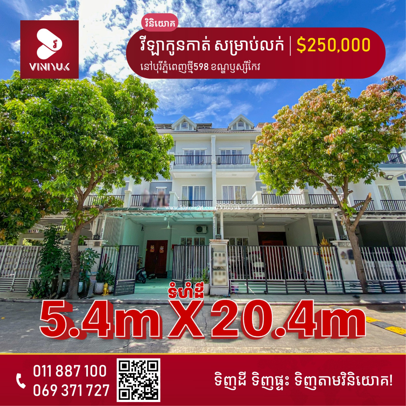 🏡វីឡាកូនកាត់ សម្រាប់លក់!! 📍ទីតាំង៖ នៅបុរីភ្នំពេញថ្មី598 ខណ្ឌឫស្សីកែវ - តម្លៃ លក់ : $250,000 ចរចា - ទំហំដី : 5.4m x 20.4m - ទំហំផ្ទះ : 5.4m x 12.2m - បន្ទប់គេង 4, បន្ទប់ទឹក 6 - សម្ភារៈ មិនមាន - ទិសបែរជើង - កាត់់ប្លង់រឹង - លេខអាជ្ញាប័ណ្ណ : E-22-404