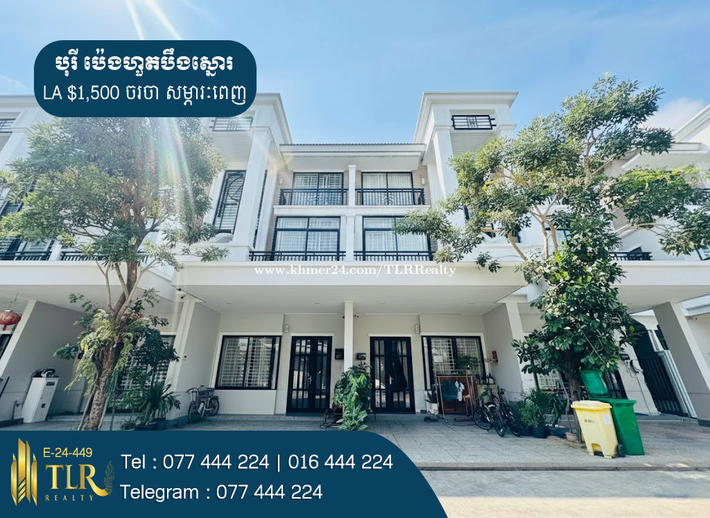 🏡វីឡាកូនកាត់ LA សម្រាប់ជួល | Link Villa LA for Rent 💲តម្លៃជួល | Price Rent : $1,500 ចរចា - សម្ភារៈ | furniture : Fully Furnished - ទំហំផ្ទះ | House Size : 5m x 12m - ទំហំដី | Land Size : 5m x 20m - បន្ទប់គេង | Bedroom : 4 - បន្ទប់ទឹក | Bathroom : 5 - ផ្ទះបាយ | Kitchen : 1 - បន្ទប់ទទួលភ្ញៀវ | Livingroom : 1 - ផ្ទះបែរទៅខាងលិច | Facing to West 📍ទីតាំងស្ថិតនៅក្នុង បុរីប៉េងហួតបឹងស្នោរ គម្រោងអេកូឌែលតា សង្កាត់វាលស្បូវ ខណ្ឌច្បារអំពៅ រាជធានីភ្នំពេញ | Location in Borey Peng Houth Beoung snor Phnom Penh. # អត្តលេខអាជ្ញាប័ណ្ណ : E-24-449 📞 Cellcard : 077444xxxClick To Call 📞 Smart : 016444xxxClick To Call 📞 Metfone : 066444xxxClick To Call 📱 Telegram : 077444xxxClick To Call 📱 Channel telegram : https://t.me/RithyTLR