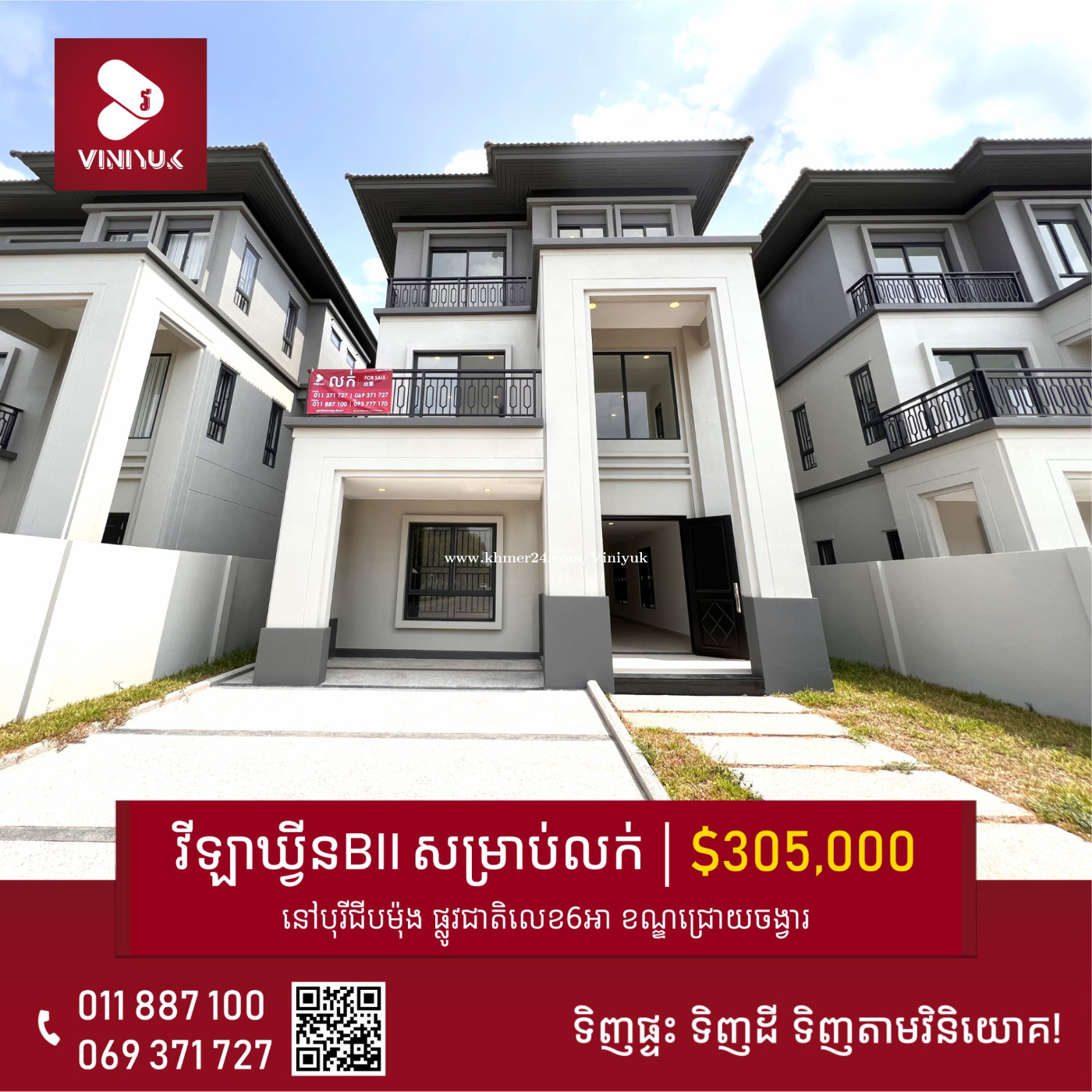 🏡វីឡាឃ្វីនប៊ី II សម្រាប់លក់ !! 📍 ទីតាំង ៖ នៅបុរីជីបម៉ុង ផ្លូវជាតិលេខ6អា ខណ្ឌជ្រោយចង្វារ - តម្លៃ ៖ $305,000 (ចរចារបាន) - ទំហំផ្ទះ ៖ 7.5m x 12.5m - ទំហំដី ៖ 11m x 23m - បន្ទប់គេង 5 , បន្ទប់ទឹក 6 - កាត់ប្លង់ត្រឹមបុរីជូន - ផ្ទះថ្មីស្អាត