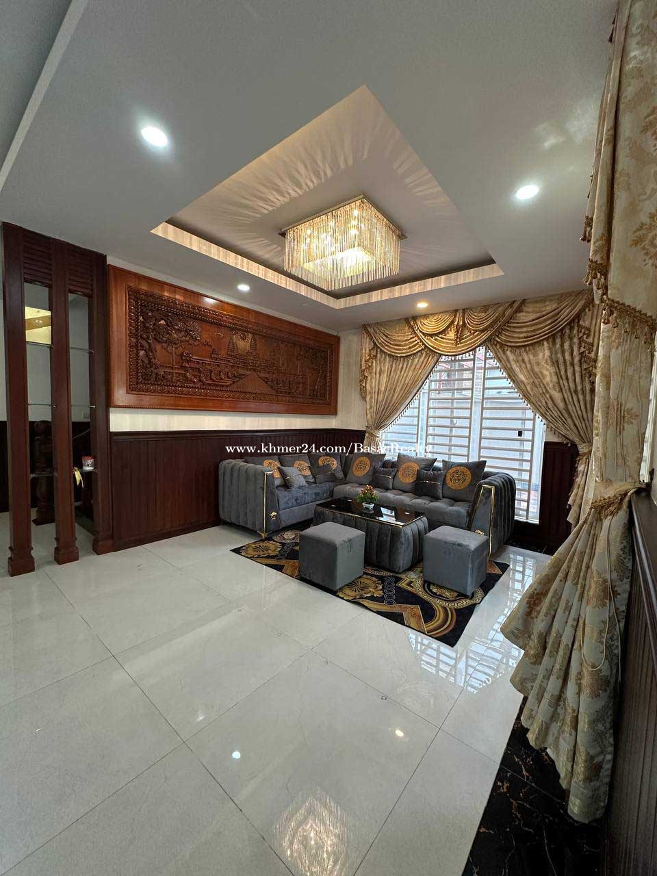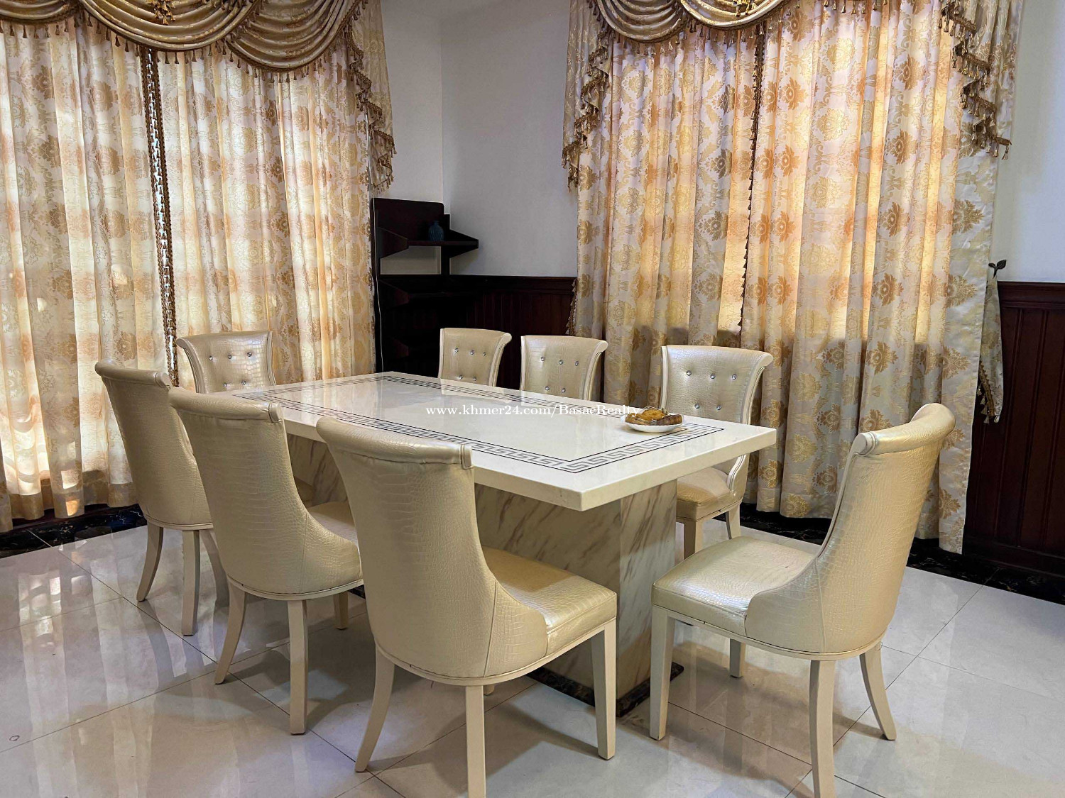 វីឡាឃ្វីនសម្រាប់ជួល នៅក្នុងបុរីប៉េងហួតបឹងស្នោរ | Queen Villa for Rent in Borey Penghuoth Boeung Snor * តម្លៃជួល | Rent Price: $5,000/month (ចរចា) * ទំហំផ្ទះ | House Size: 12m x 12m * បន្ទប់គេង | Bedroom: 05 * បន្ទប់ទឹក | Bathroom: 06 * បន្ទប់ទទួលភ្ញៀវ | Living Room: 01 * ផ្ទះបាយ | Kitchen: 01 * បែរមុខទៅទិសខាងត្បូង | Facing South