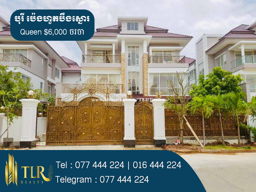 🏡វីឡាឃ្វីនសម្រាប់ជួល | Villa Queen for Rent 💲តម្លៃជួល | Price Rent : $6,000 ចរចា - សម្ភារ: | Furniture : Fully Furnished - ទំហំផ្ទះ | House Size : 12m x 12m - ទំហំដី | Land Size : 20m x 24m - បន្ទប់គេង | Bedroom : 6 - បន្ទប់ទឹក | Bathroom : 7 - ផ្ទះបាយ | Kitchen : 1 - បន្ទប់ទទួលភ្ញៀវ | Livingroom : 1 - ផ្ទះបែរទៅខាងជើង | Facing to North 📍ទីតាំងស្ថិតនៅក្នុង បុរីប៉េងហួតបឹងស្នោរ គម្រោងមឺហ្គឺរៀន សង្កាត់និរោធ ខណ្ឌច្បារអំពៅ រាជធានីភ្នំពេញ | Location in Borey Peng Huoth Beoung Snor Phnom Penh. # អត្តលេខអាជ្ញាប័ណ្ណ : E-24-449 📞 Cellcard : 077444xxxClick To Call 📞 Smart : 016444xxxClick To Call 📞 Metfone : 066444xxxClick To Call 📱 Telegram : 077444xxxClick To Call 📱 Channel telegram : https://t.me/RithyTLR