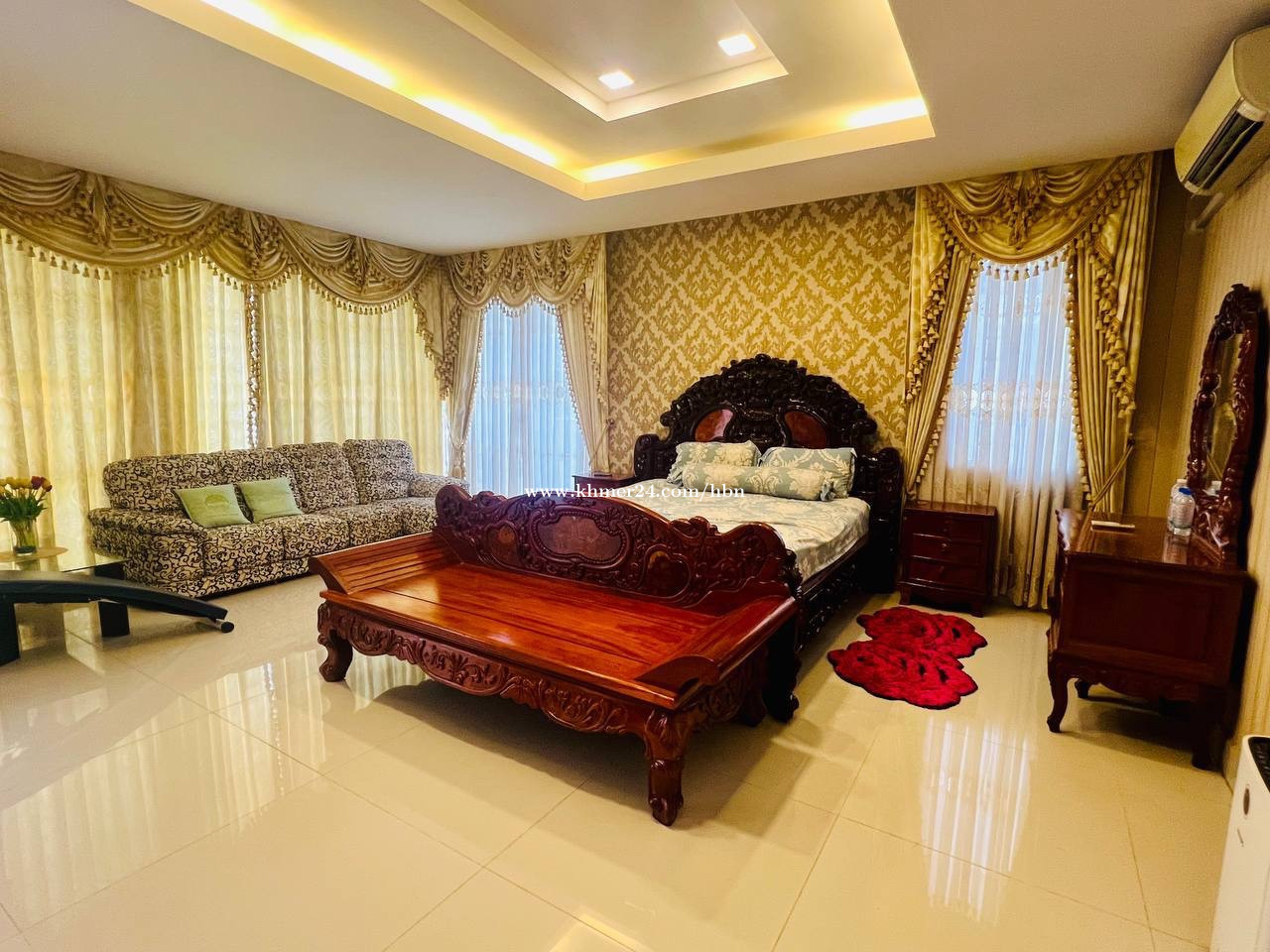 -វីឡាឃ្វីន សម្រាប់ជួល | Queen Villa For Rent -តម្លៃជួល | Rent price : 6,000$ -ទំហំផ្ទះ | Home size : 12m x 12m -ទំហំដី | Land size : 18m x 24m -បន្ទប់គេង | Bedrooms : 5 -បន្ទប់ទឹក | Bathrooms : 6 -សម្ភារៈពេញ | Fully Finished -បែរទិសជើង | North -ទីតាំង | Location: បុរីប៉េងហួតបឹងស្នោរ សង្កាត់និរោន៍ ខណ្ឌច្បារអំពៅ