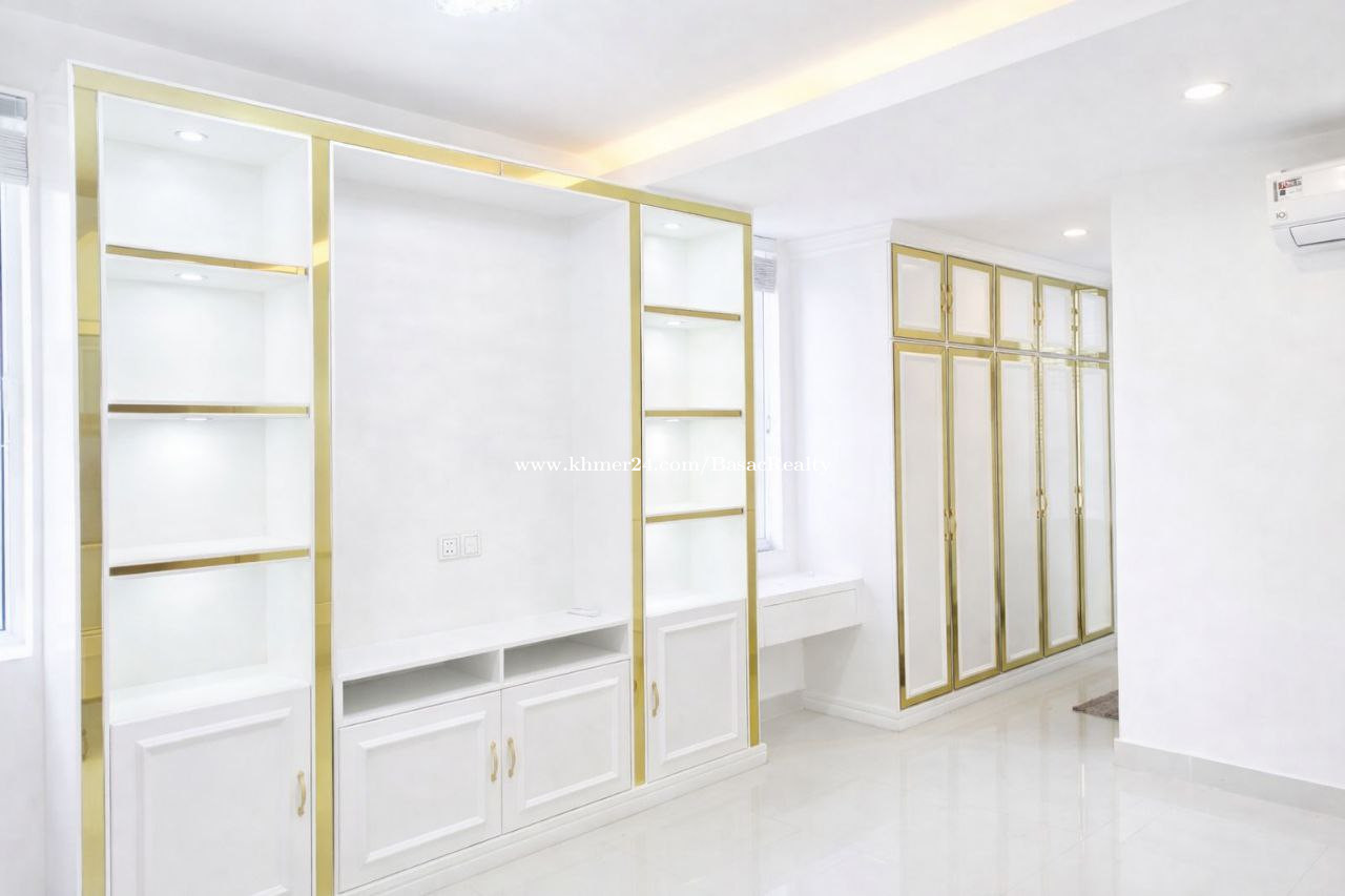 វីឡាចាស្មីនណាសម្រាប់ជួល នៅក្នុងបុរីប៉េងហួតបឹងស្នោរ ផ្លូវមុខសួនមហាវិថី | Jasmina Villa for Rent in Borey Penghuoth Boeung Snor On street Polaris Blvd - តម្លៃជួល | Rent Price: $3,500/month - ទំហំផ្ទះ Houze Size: 7.6m x 14m - ទំហំដី​ Land Size: 14m x 24m - បន្ទប់គេង | Bedroom: 05 - បន្ទប់ទឹក | Bathroom: 06 - បន្ទប់ទទួលភ្ញៀវ | living Room: 01 - ផ្ទះបាយ kitchen: 01 - ចំណតឡាន | Parking: 02 - បែរទិសខាងលិច | Facing West - សម្ភារ:ពេញ | Fully Furnished