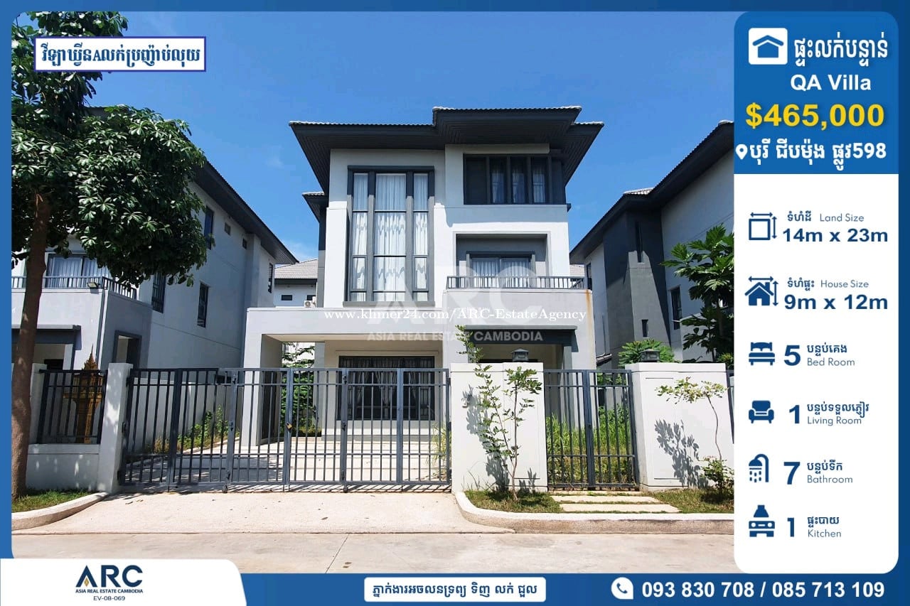 #Queen A Villa For Sale at Borey Chip Mong Park Land 598 #វីឡាឃ្វីនAដាក់លក់បន្ទាន់នៅក្នុងបុរី ជីបម៉ុង 598 ជិតផ្សារទំនេីបអុីអន២ 🔹 តម្លៃលក់ក្រោមទីផ្សារ : $465,000 (ចរចាម្ចាស់ផ្ទាល់) 🔹 កាត់ឈ្មោះប្លង់រឹងជូន 🔹 ទំហំដី : 14m x 23m 🔹 ទំហំផ្ទះ : 9m x 12m 🔹 បន្ទប់គេង : 05 បន្ទប់ទឹក : 07 📍ទីតាំងត្រឹមតែ07នាទីពីផ្សារទំនើប AEON2 Makro សង្កាត់ច្រាំងចំរេះទី២ ,ខណ្ឌឬស្សីកែវ ,រាជធានីភ្នំពេញ សម្រាប់ពត៏មានលម្អិតសូមទំនាក់ទំនងមកក្រុមការងារ 085713xxxClick To Call / 093830xxxClick To Call / 0978899xxxClick To Call Chat to Telegram Agent https://t.me/sonsela14 Channel Telegram https://t.me/ARCKhanResseykeo 👉 អាជ្ញាប័ណ្ណ៖ EV-08-069