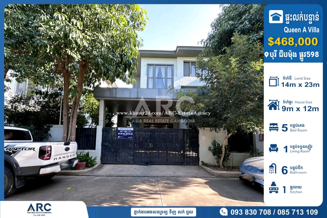 #Queen A Villa For Sale at Borey Chip Mong Park Land 598 #វីឡាឃ្វីនអេដាក់លក់បន្ទាន់នៅក្នុងបុរី ជីបម៉ុង 598 ជិតផ្សារទំនេីបអុីអន២ 🔹 តម្លៃលក់ក្រោមទីផ្សារ : $468,000 (ចរចាម្ចាស់ផ្ទាល់) 🔹 កាត់ឈ្មោះប្លង់រឹងជូន 🔹 ទំហំដី : 14m x 23m 🔹 ទំហំផ្ទះ : 9m x 12m 🔹 បន្ទប់គេង : 05 បន្ទប់ទឹក : 06 📍ទីតាំងត្រឹមតែ07នាទីពីផ្សារទំនើប AEON Mall2 សង្កាត់ច្រាំងចំរេះទី២ ,ខណ្ឌឬស្សីកែវ ,រាជធានីភ្នំពេញ សម្រាប់ពត៏មានលម្អិតសូមទំនាក់ទំនងមកក្រុមការងារ 085713xxxClick To Call / 093830xxxClick To Call / 0978899xxxClick To Call Chat to Telegram Agent https://t.me/sonsela14 Channel Telegram https://t.me/ARCKhanResseykeo 👉 អាជ្ញាប័ណ្ណ៖ EV-08-069