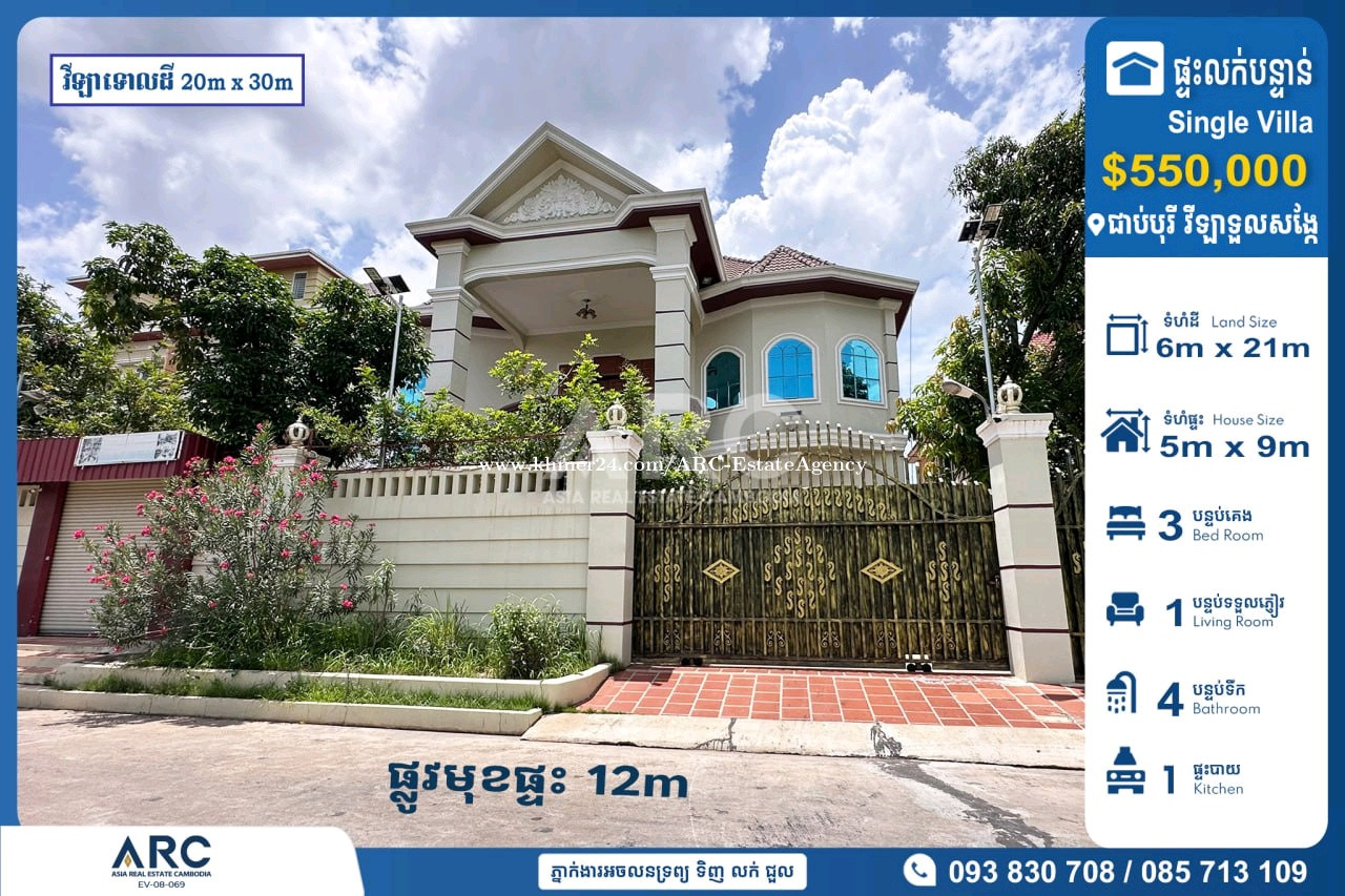 #Single Villa For Sale at Borey Villa Toul Sangkae #វីឡាទោលដាក់លក់បន្ទាន់នៅជាប់បុរី វីឡាទួលសង្កែ ( ខណ្ឌឬស្សីកែវ ) 🔹 តម្លៃលក់ក្រោមទីផ្សារ : $550,000 (ចរចាម្ចាស់ផ្ទាល់) 🔹 កាត់ឈ្មោះប្លង់រឹងជូន 🔹 ទំហំដី : 20m x 30m 🔹 ទំហំផ្ទះ : 16m x 18m 🔹 បន្ទប់គេង : 08 បន្ទប់ទឹក : 09 📍ទីតាំងស្ថិតនៅជិតទីលានវាយកូនហ្គោល ( City Golf Club ) សង្កាត់ឬស្សីកែវ,ខណ្ឌឬស្សីកែវ ,រាជធានីភ្នំពេញ សម្រាប់ពត៏មានលម្អិតសូមទំនាក់ទំនងមកក្រុមការងារ 085713xxxClick To Call / 093830xxxClick To Call / 0978899xxxClick To Call Chat to Telegram Agent https://t.me/sonsela14 Channel Telegram https://t.me/ARCKhanResseykeo 👉 អាជ្ញាប័ណ្ណ៖ EV-08-069